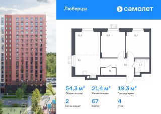 Строим кварталы для жизни с заботой о будущем. Предлагаются 2-комнатные апартаменты комфорт-класса площадью 54,3 кв.м в корпусе 67 на 4-м этаже, в жилом комплексе ''Люберцы''.Дизайн-проект отделки представлен качественными материалами от ведущих производителей. Цвета отделки гармонично сочетаются между собой и позволяют подобрать мебель и предметы интерьера на любой вкус.Прописка не предусмотрена в рамках юридического статуса - апартаменты.Приобрести апартаменты возможно по специальным акциям от застройщика, с текущими условиями акций можно ознакомиться в блоке ''Акций''.Цена динамическая и может отличаться, уточняйте актуальность у застройщика.Люберцы — проект из 70 домов на границе с Москвой. Часть зданий стоит на берегу озера Черное, из окон с высоты 1517 этажей открывается вид на воду и Салтыковский лесопарк.
