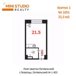 Студия в Люберцах. Готовая студия в комплексе со спортзалом, коворкингом, зоной для отдыха. Проект Лофт-квартал Октябрьский.Продается студия с полной отделкой 21,5 кв.м в подмосковном городе Люберцы. Собственная огороженная охраняемая территория с парковкойЗдание после ремонта: качественные материалы, современный дизайн, просторные холлы, новое лифтовое оборудование.- В холле расположено лобби со стойкой ресепшн и лаунж зоны. При входе предусмотрено место хранения детского транспорта и колясок- Спортивный зал, хамам, зона коворкинга всё для комфортного проживания- На огороженной безопасной зеленой территории расположены спортивная площадка и места отдыха, оборудован паркингКрасивый двор парк с вековыми вечнозелеными деревьями создает особую загородную атмосферу старинной усадьбы. На огороженной безопасной зеленой территории расположены спортивная площадка и места отдыха, оборудован паркинг.Транспортная доступность:- 15 минут на комфортной электричке D3 до метро Выхино- 20 минут пешком или 7 минут на маршрутном такси 8к - до станции МЦД Панки - На маршрутном такси 44к, 55к или автобусе 44 за 25 минут доехать до метро Котельники Инфраструктура:- Гимназия 20 им. Н.Д. Дугина, Гимназия общеобразовательная школа 8- Детские сады 59 и 28, частный сад Благополучие- В 10 минутах пешком от комплекса расположен Торговый центр Орбита- В окружении расположены сетевые супермаркеты: Да!, Пятерочка, Дикси- Недалеко расположено центральное отделение Городской Люберецкой больницы, включая поликлинику, травмпункт, детское отделение и один из лучших в Подмосковье Родильный домНе доля. Выделенный ЕГРН. Продажа по договору купли-продажи, статус нежилое помещение с отдельным кадастровым номером.Оперативный показ и полное сопровождение сделки.