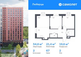 Предлагаются 2-комнатные апартаменты комфорт-класса 54,6 кв.м в корпусе 67 на 2 этаже, в ''Люберцы''Апартаменты с чистовой отделкой. Доступность дополнительных опций уточняйте у застройщика.Прописка не предусмотрена в рамках юридического статуса - апартаменты.Приобрести апартаменты возможно по специальным акциям от застройщика, с текущими условиями акций можно ознакомиться в блоке ''Акций''.Цена динамическая и может отличаться, уточняйте актуальность у застройщика.Люберцы — проект из 70 домов на границе с Москвой. Часть зданий стоит на берегу озера Черное, из окон с высоты 1517 этажей открывается вид на воду и Салтыковский лесопарк.