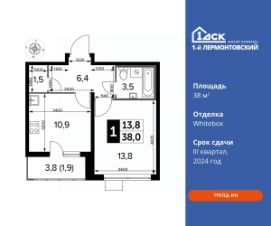 Максимальные скидки при 100% оплате.Корпус сдан! Прямая продажа от застройщика! Жилой Комплекс класса Комфорт плюс.Продаётся 1-к квартира номер 543 в сданном корпусе общей площадью 38 кв.м на 5-м этаже 24 этажного дома.Особенности:- Квартира доступна к покупке в Trade-In.- Просторная спальня, в которой можно разместить большую кровать.- Линейная планировка - максимальная функциональность и удобство.- Увеличенная ширина окна/окон - больше света и визуального простора.- Линейная кухня - функциональность и практичность в одном решении.- Ограниченное количество квартир на этаже - комфорт и уют без лишней суеты.- Кладовая - дополнительное пространство для хранения.- Лоджия - уютное место для отдыха и тишины.- Вид из окна: дворРасположение комплекса: Ощущение уютного дома должно начинаться с подъезда. Мы постарались предусмотреть все нюансы, чтобы наши лифты отвечали самым строгим современным требованиям. Двор без машин, закрытое, безопасное, охраняемое место с удобным доступом для вашего авто, более чистый воздух и гарантированное место для стоянки - и это далеко не преимущества наличия подземного паркинга. А наличие кладовых позволит вам поддерживать идеальный порядок и уют в вашей квартире!''1-й Лермонтовский'' расположился недалеко от уже сложившегося зеленого окружения - Люберецкого парка и Жулебинского лесопарка, переходящего в природно - исторический парк ''Кузьминки''. Если вы предпочитаете активный семейный отдых на свежем воздухе - в округе мест для него предостаточно. С востока он граничит со столичным районом Некрасовка. С северной стороны - с развитым современным микрорайоном ''Красная Горка''. Удачное расположение дарит жильцам возможность передвижения как на своем автомобиле, так и на общественном транспорте.Транспортная доступность:В шаговой доступности ж/д станция ''Люберцы-1''. 5 минут на автомобиле до станций метро ''Некрасовка'', ''Котельники'', ''Лермонтовский проспект''.Внутренняя инфраструктура:Свободно перемещайтесь по внутренней территории в безбарьерной среде! На территории комплекса созданы все условия как для активного образа жизни, так и для спокойного времяпрепровождения:- игровые площадки для детей разного возраста.- площадки воркаута, спортивные комплексы с зонами для детского и взрослого спорта.- зоны отдыха с пешеходными дорожками и аллеями. Также, к вашим услугам: 4 общеобразовательные школы, 7 детских садов, спортивные и танцевальные, школы, поликлиники, множество магазинов и супер-маркетов, включая Ашан и несколько крупных ТЦ в шаговой доступности. Цены указаны с учетом скидки.