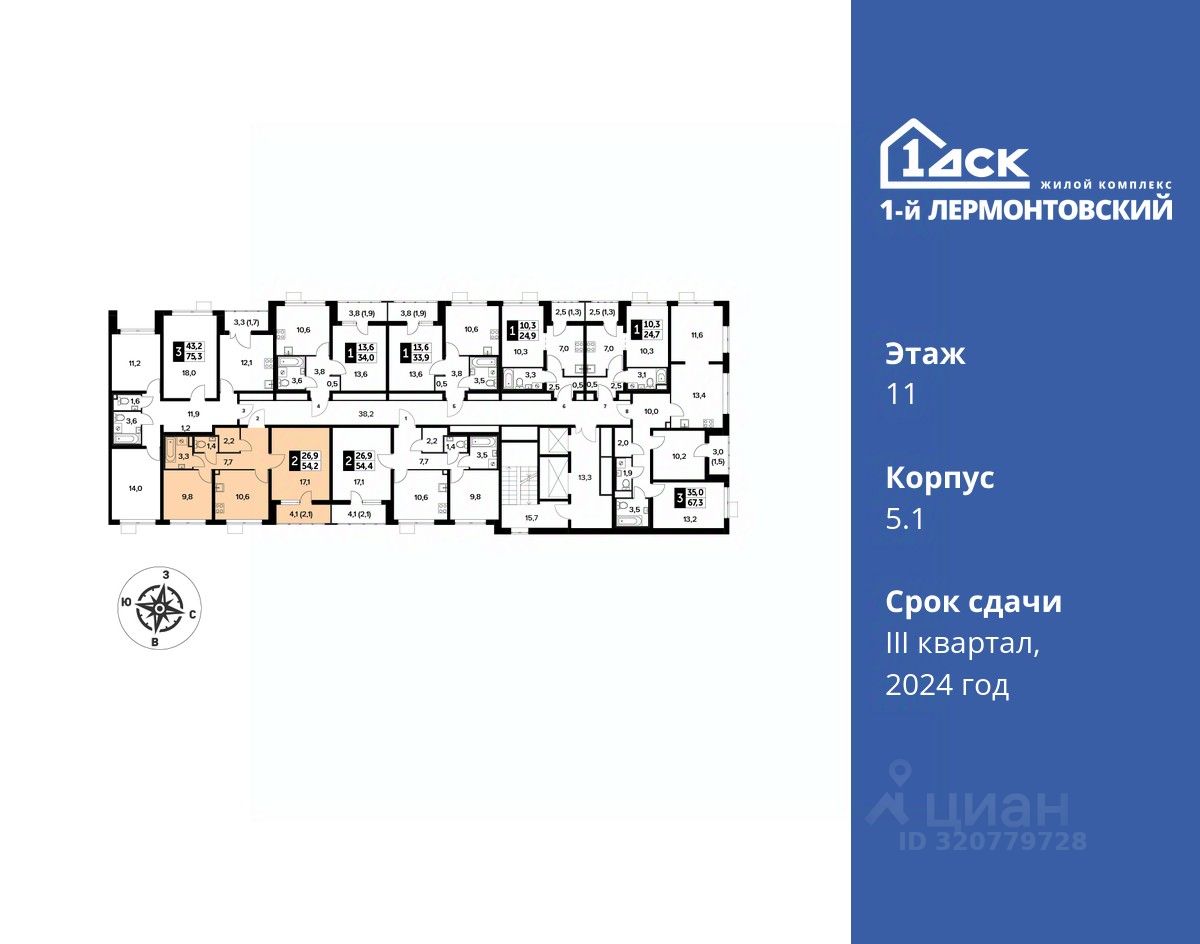 54 м² · Этаж 11 из 24