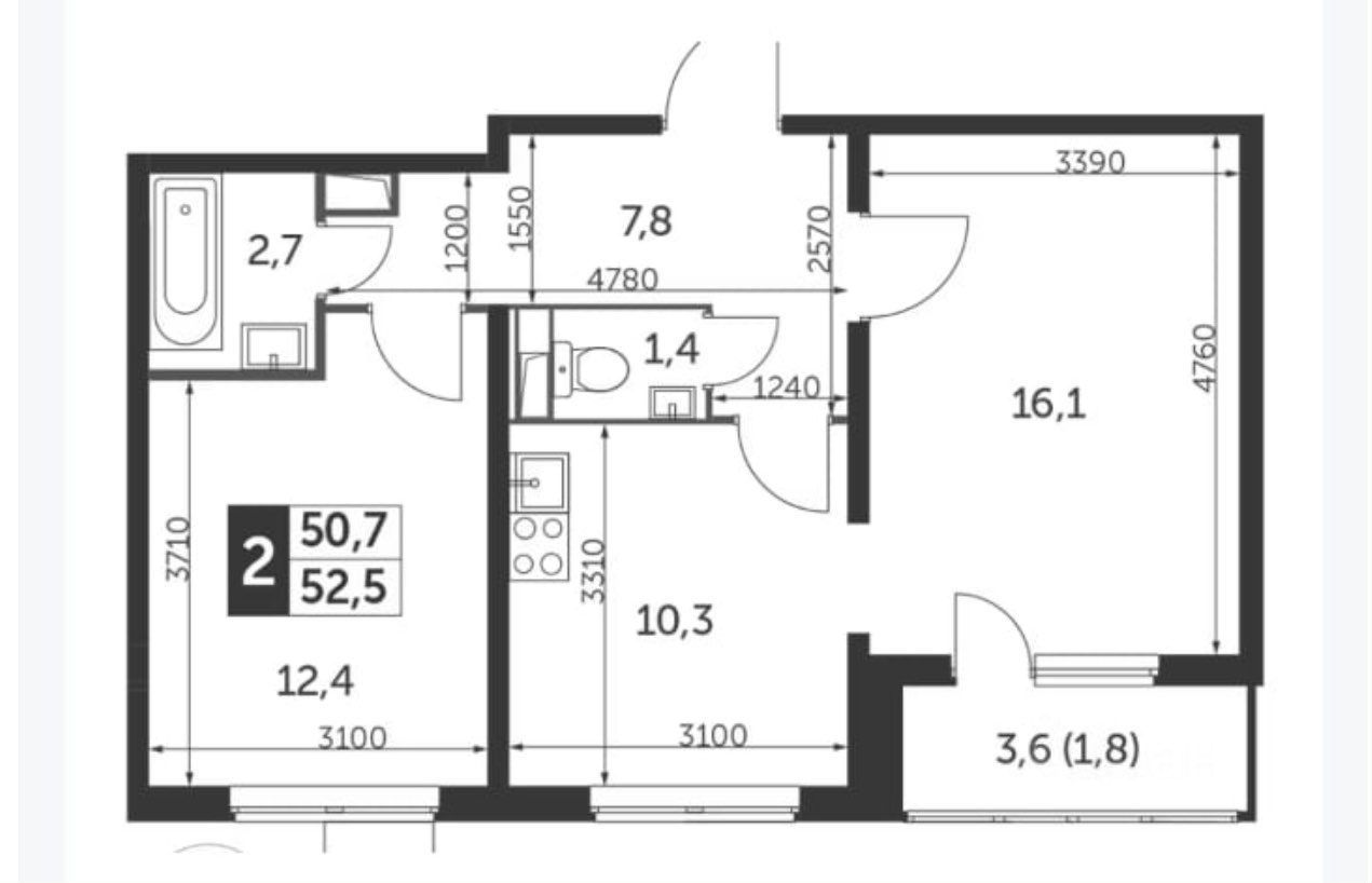 52 м² · Этаж 2 из 22