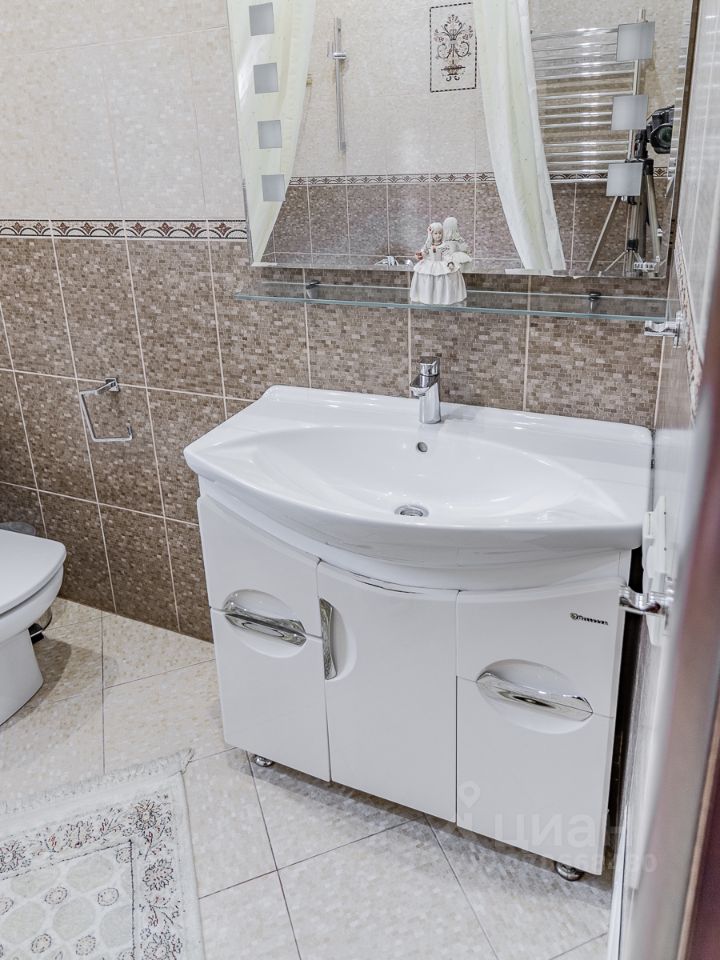 В доме выполнен отличный ремонт, с использованием качественных и дорогих материалов. Двери массив, мебель Итальянского и Российского производства. Теплый пол во всех сан узлах, кухне и холле!