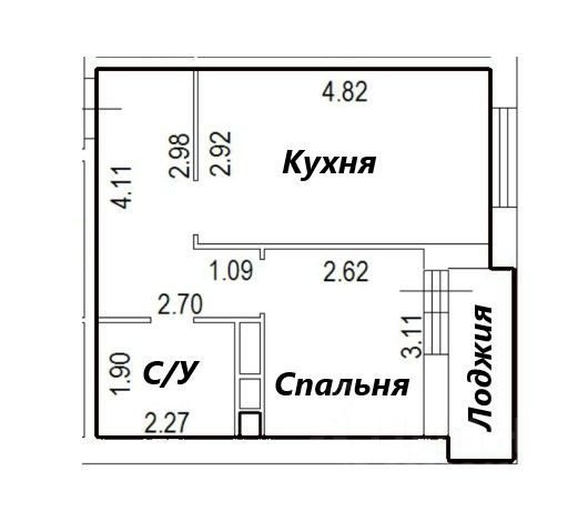 Большая кухня (14 кв.м.) и лоджия (3,6 кв. м.), уютная спальня.