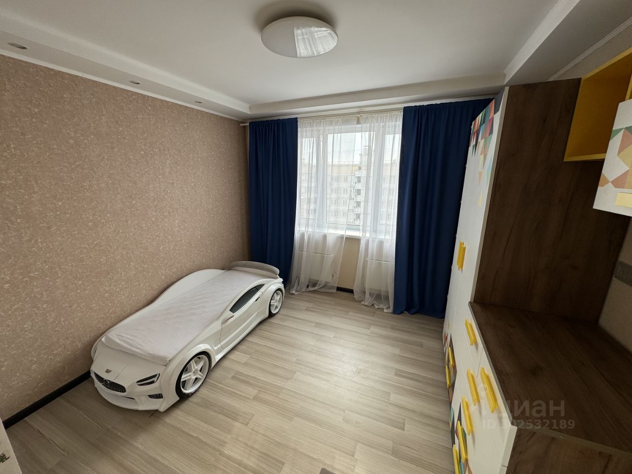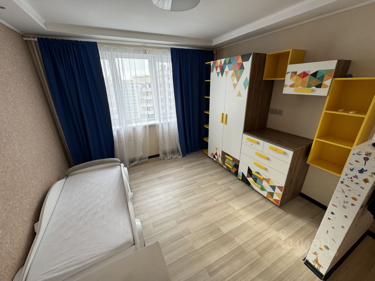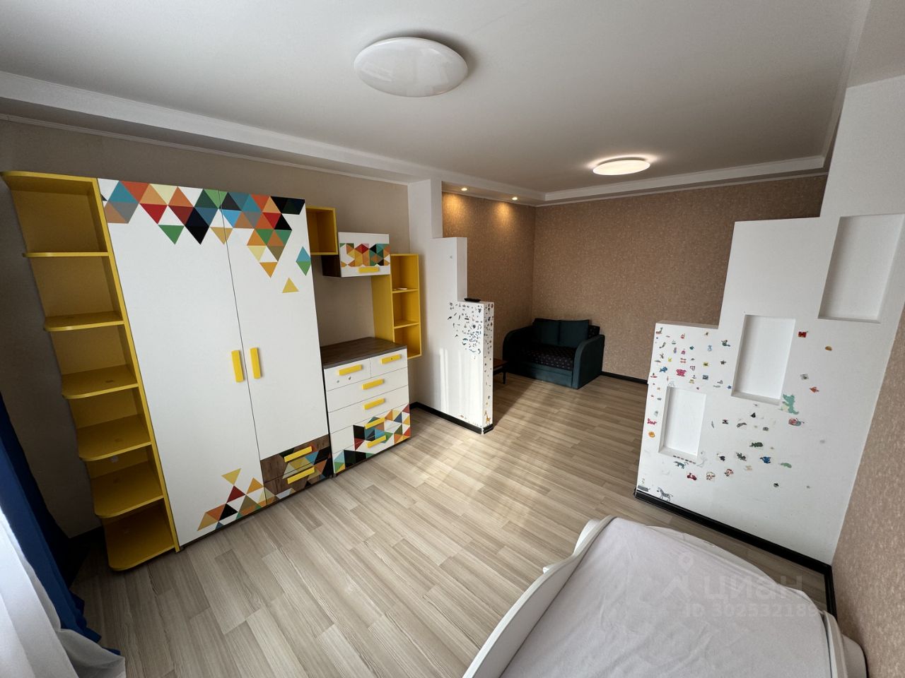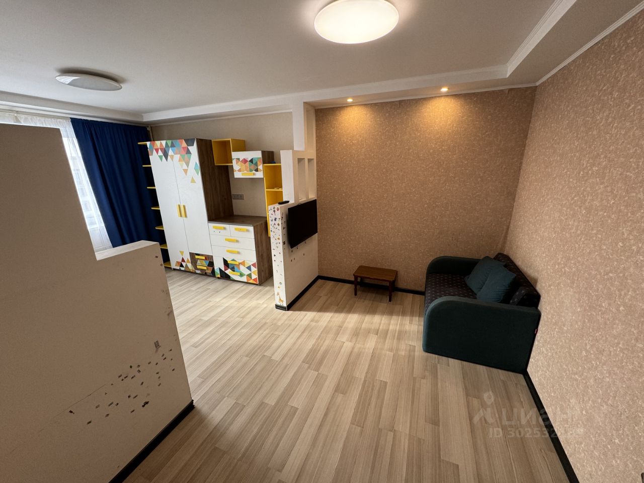 - Натяжные матовые тканевые потолки, на полу ламинат, хорошая сплит система