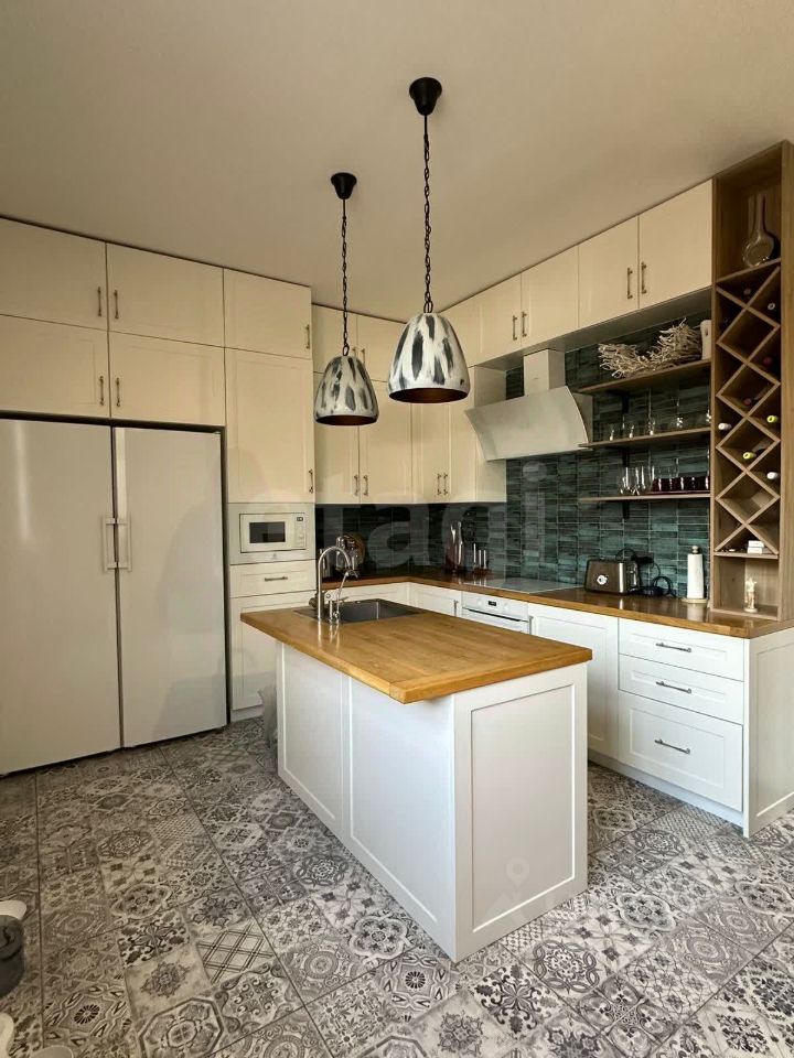 На первом этаже расположена просторная кухня с островом и всей необходимой техникой, уютная просторная гостиная с камином на дровах, и ванная комната с сантехникой Villeroy & Boch.