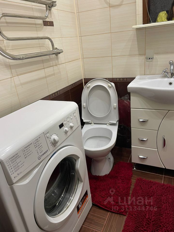 Санузел совмещен, в плитке до потолка. Стиральная машина автомат. В прихожей гарнитур для верхней одежды.