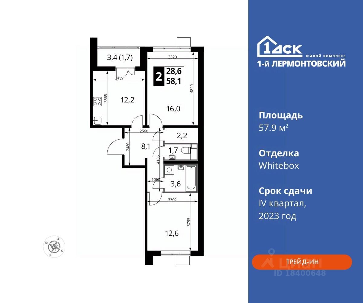 Максимальные скидки при 100% оплате. Корпус сдан! Прямая продажа от застройщика! Жилой Комплекс класса Комфорт плюс. Продаётся 2-к квартира номер 512 в сданном корпусе общей площадью 57.9 кв.м на 13-м этаже 22 этажного дома.
