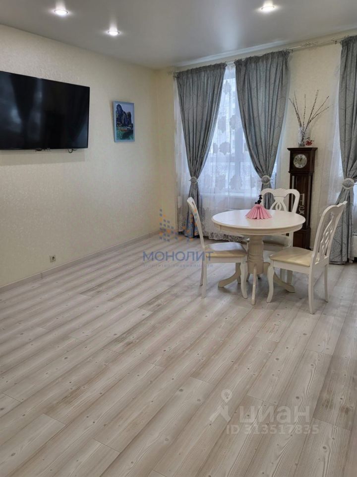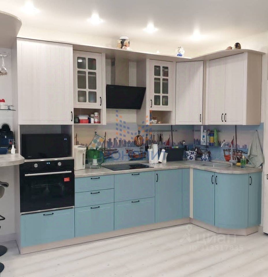 Квартира расположена на улице Юности, 13к1. Общая площадь составляет 77,2 кв. м, из которых жилая — просторная кухня-гостиная — 21,5 кв. м. Квартира находится на 6 этаже 25-этажного панельного дома.