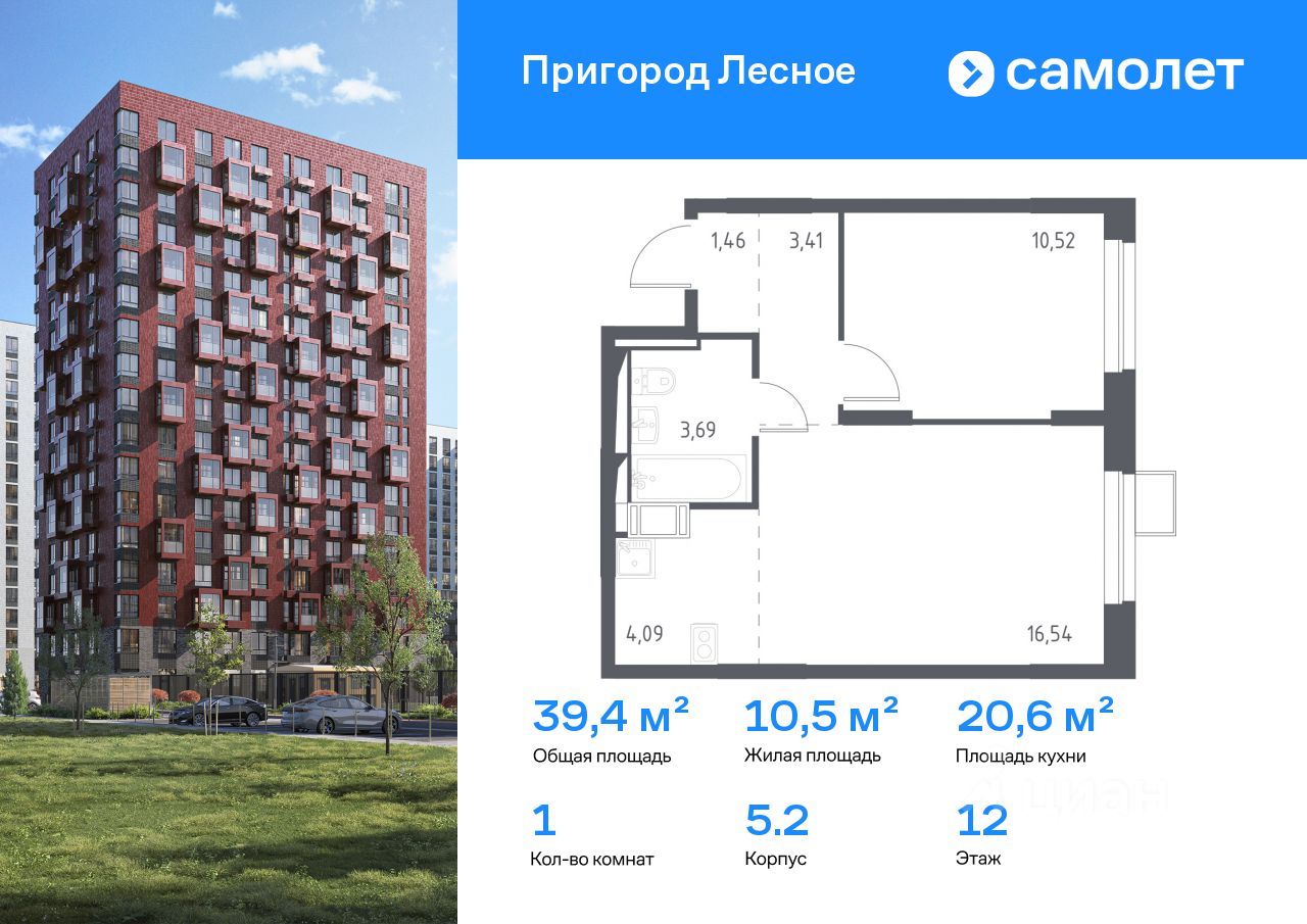 Предлагается 1-комнатная квартира комфорт-класса 39,4 кв.м в корпусе 5.2 на 12 этаже, в ЖК ''Пригород Лесное'' Квартира с чистовой отделкой. Доступность дополнительных опций уточняйте у застройщика.