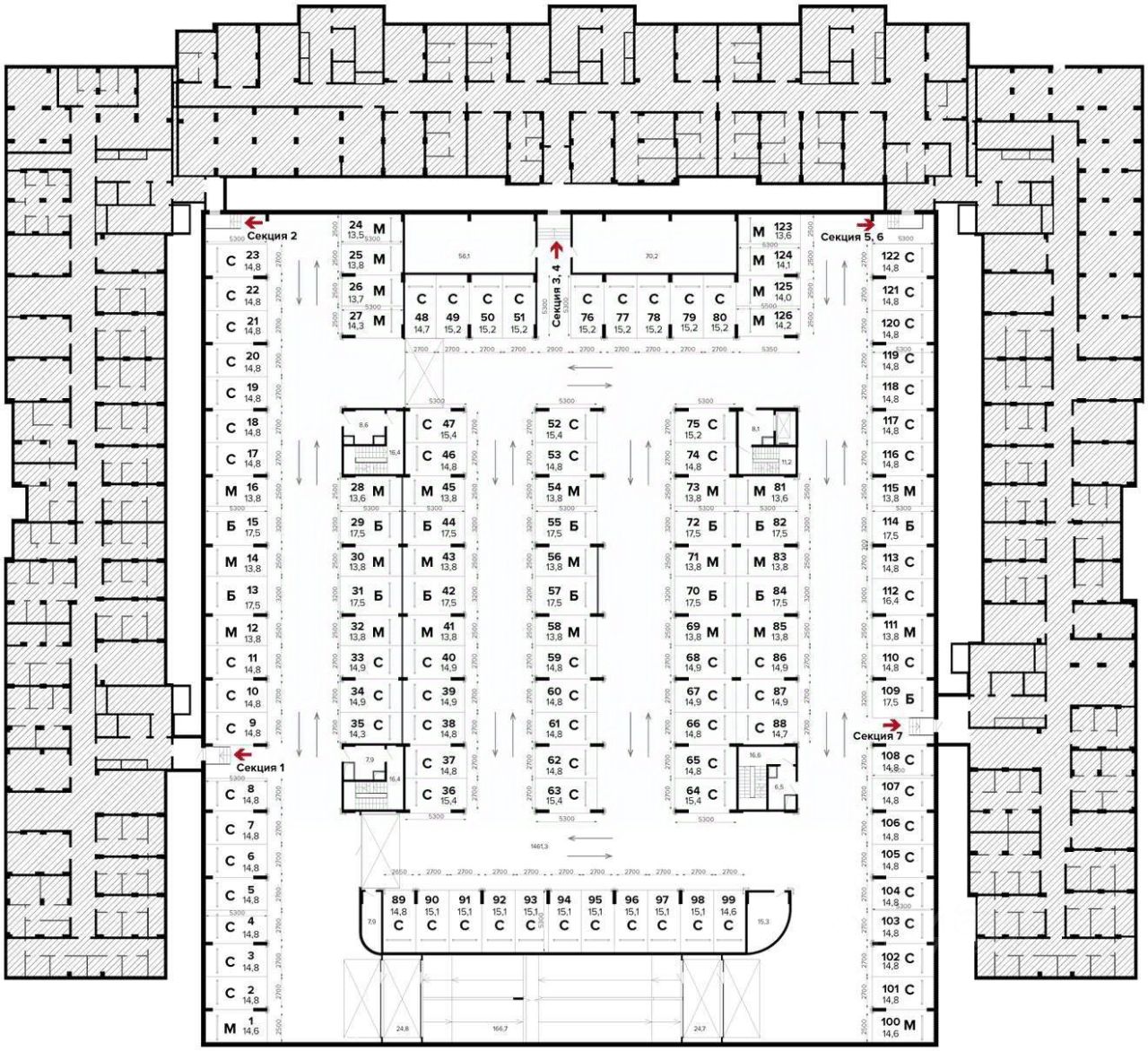 Машиноместо номер 18 общей площадью 14.8 кв. м на -1-м этаже в ЖК ''1-й Лермонтовский''.