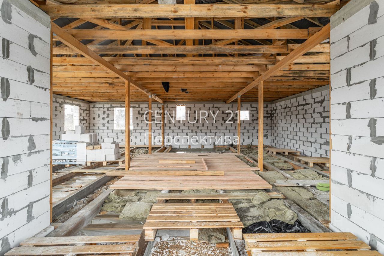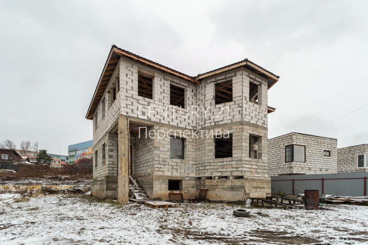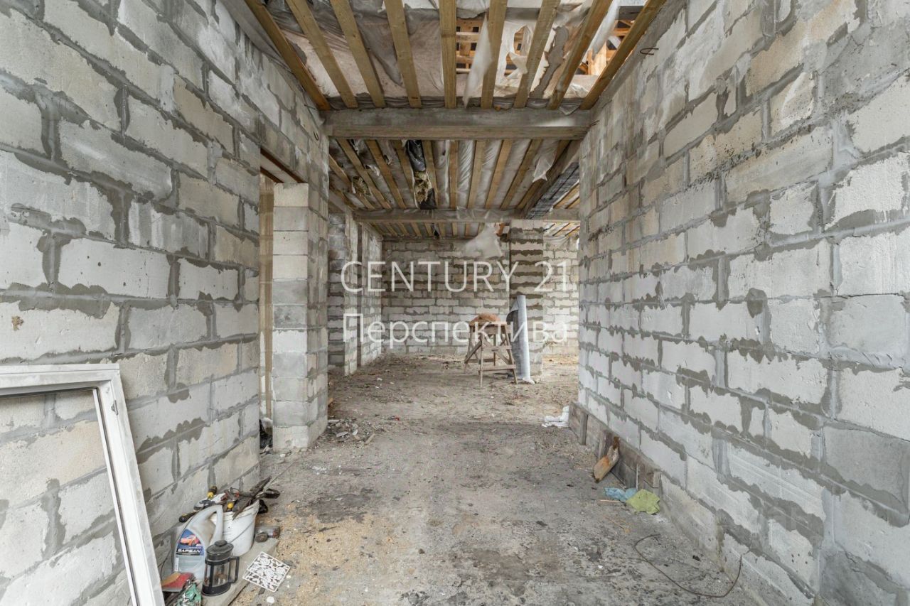-Свайно-ленточный фундамент глубиной 4.5 метра. -Первый этаж : проектом предусмотрена просторная комната , большая кухня-гостинная , санузел. -Второй этаж : 4 спальных комнаты по проекту , санузел. -Имеется цокольный этаж .