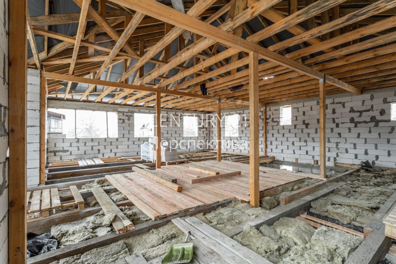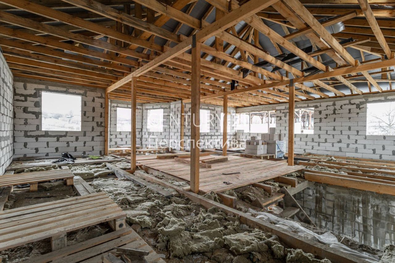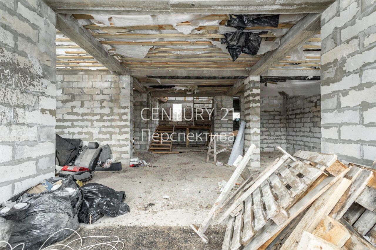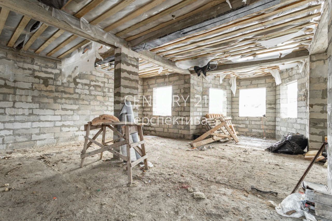 -Свайно-ленточный фундамент глубиной 4.5 метра. -Первый этаж : проектом предусмотрена просторная комната , большая кухня-гостинная , санузел. -Второй этаж : 4 спальных комнаты по проекту , санузел. -Имеется цокольный этаж .
