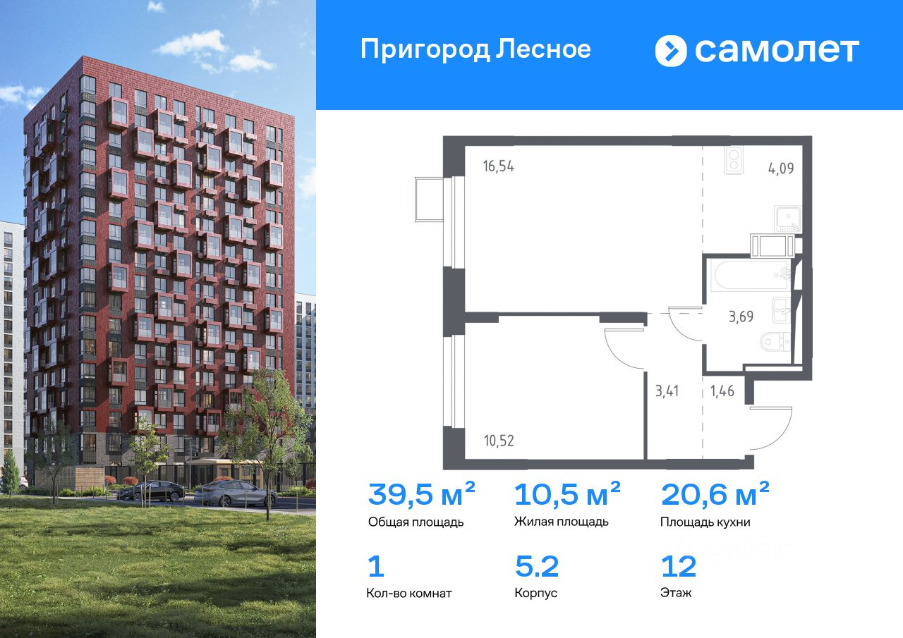 Предлагается 1-комнатная квартира комфорт-класса 39,5 кв.м в корпусе 5.2 на 12 этаже, в ЖК ''Пригород Лесное'' Квартира с чистовой отделкой. Доступность дополнительных опций уточняйте у застройщика.