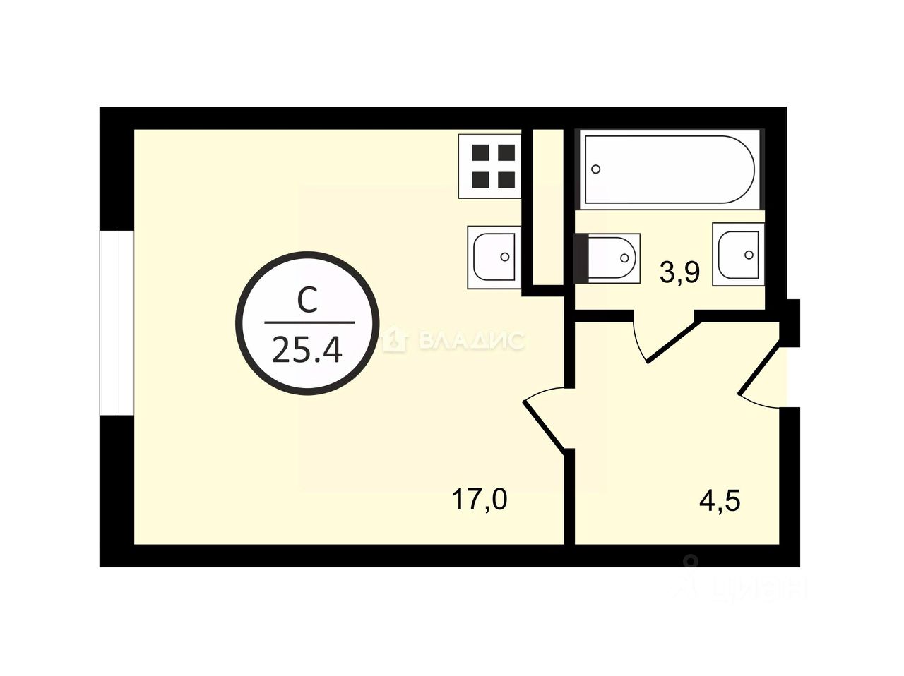 Квартира расположена на 5 этаже 25-этажного монолитного дома. Общая площадь — 25,4 кв. м., В квартире выполнен евроремонт, установлена функциональной мебелью и техника, поэтому можно сразу заселиться и жить! Есть продуманное место для хранения!