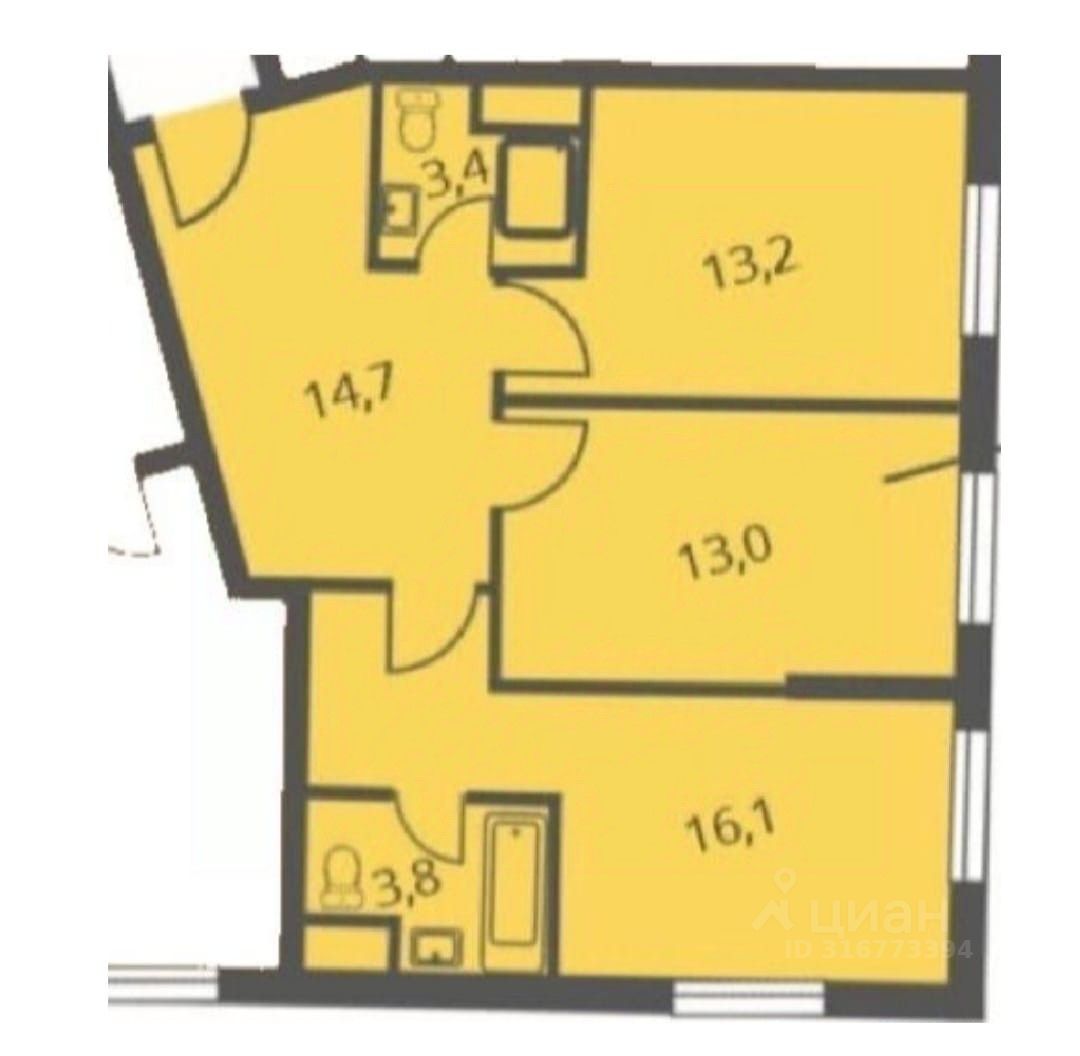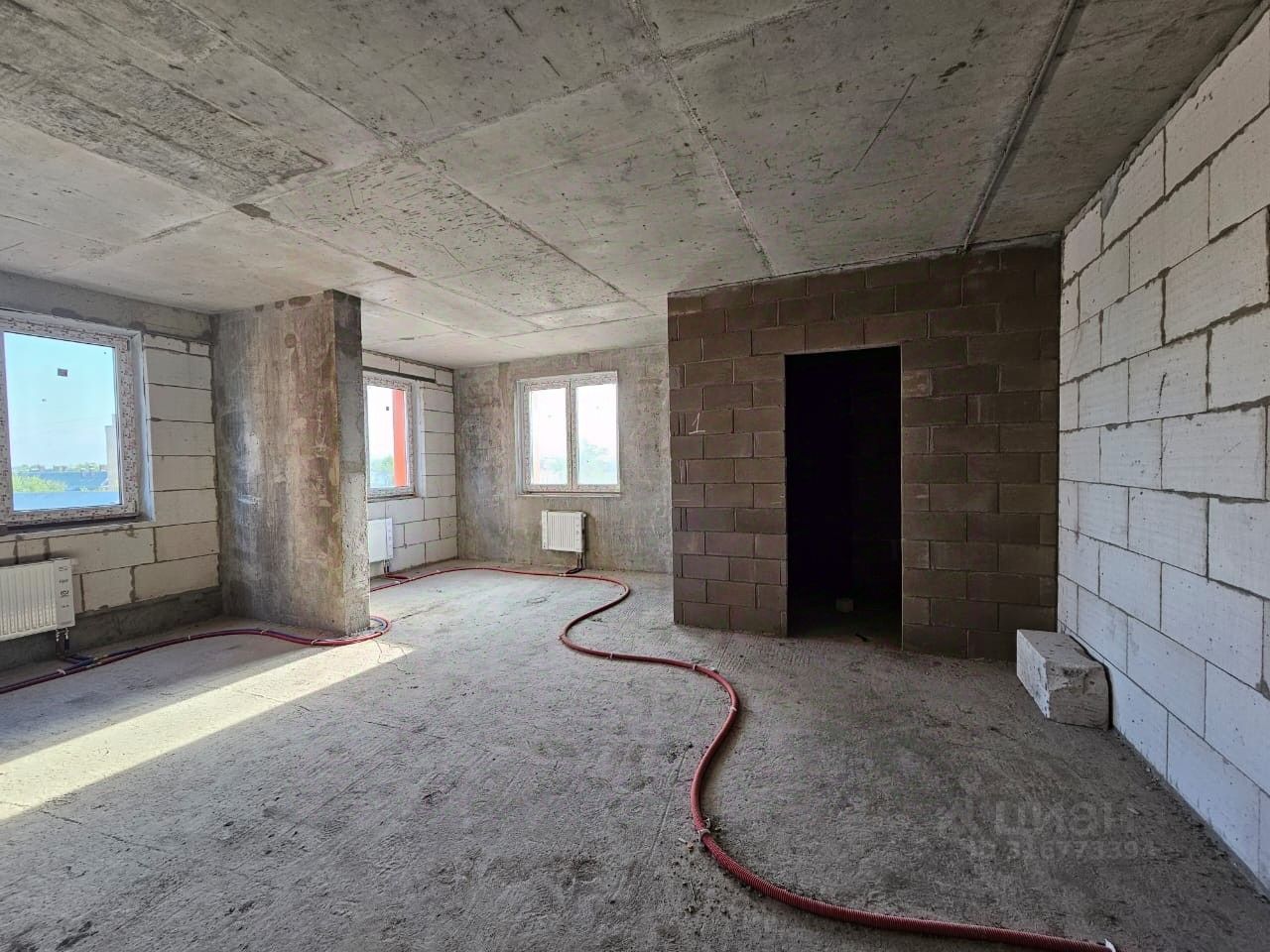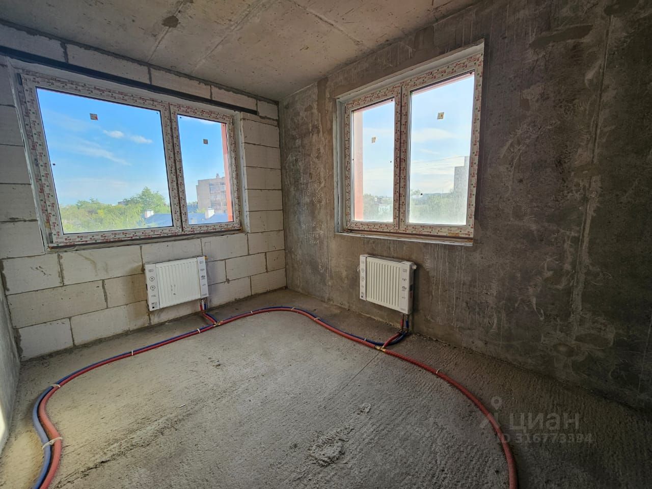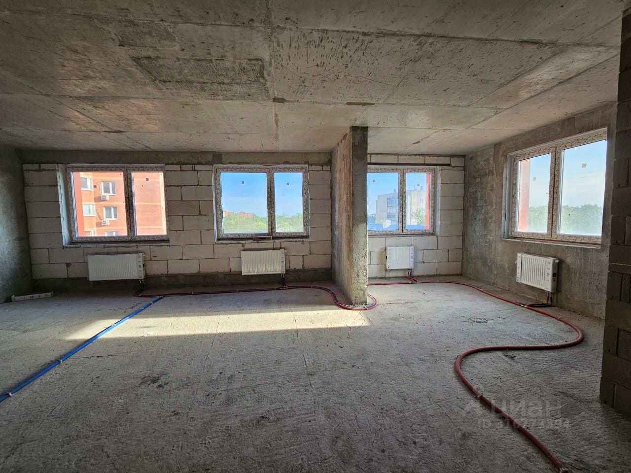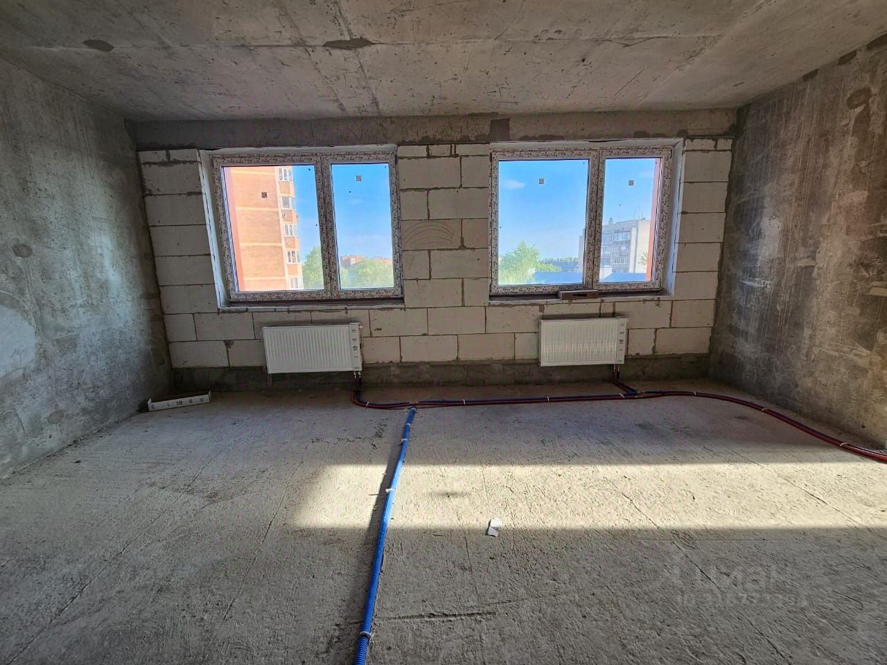 Квартира свободной планировки без отделки, два санузла, 4 окна, квартира будет очень светлой. Прекрасный вид из окон, ничто не загораживает обзор.