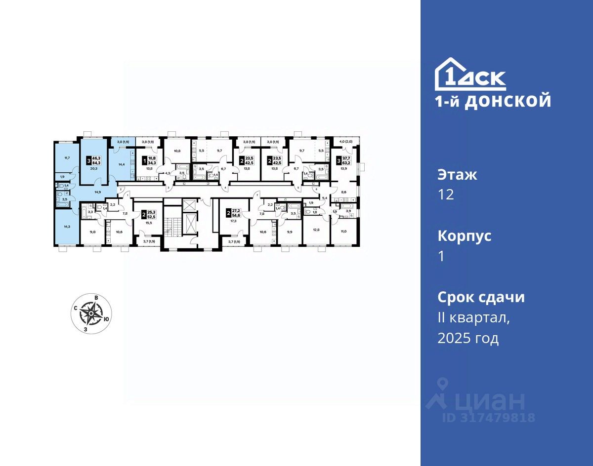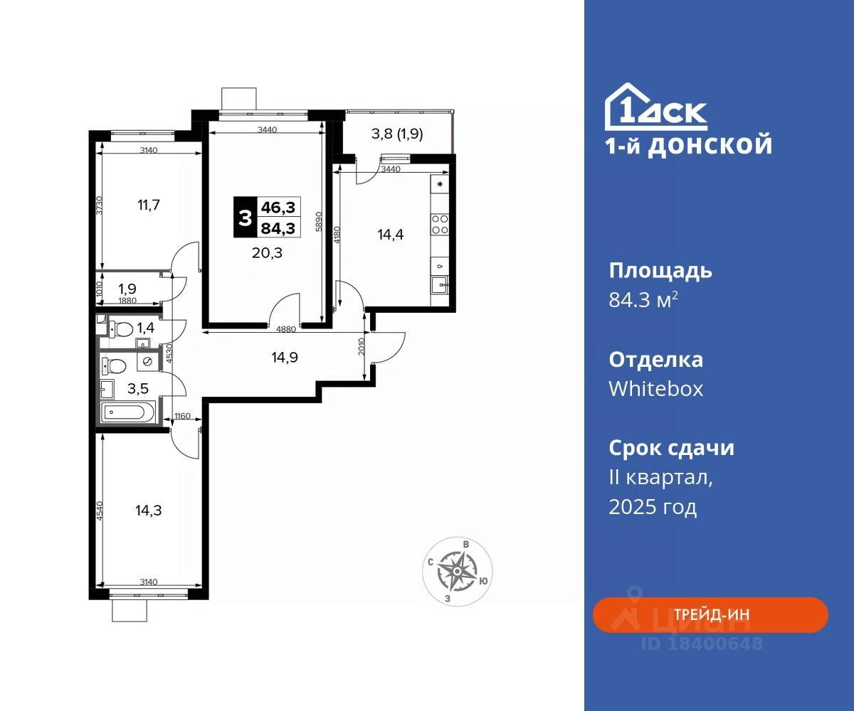 Общая площадь84,3 м2