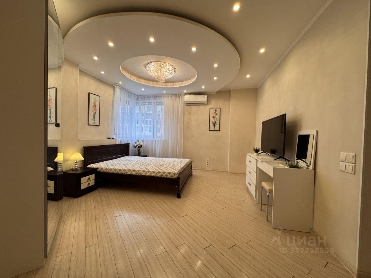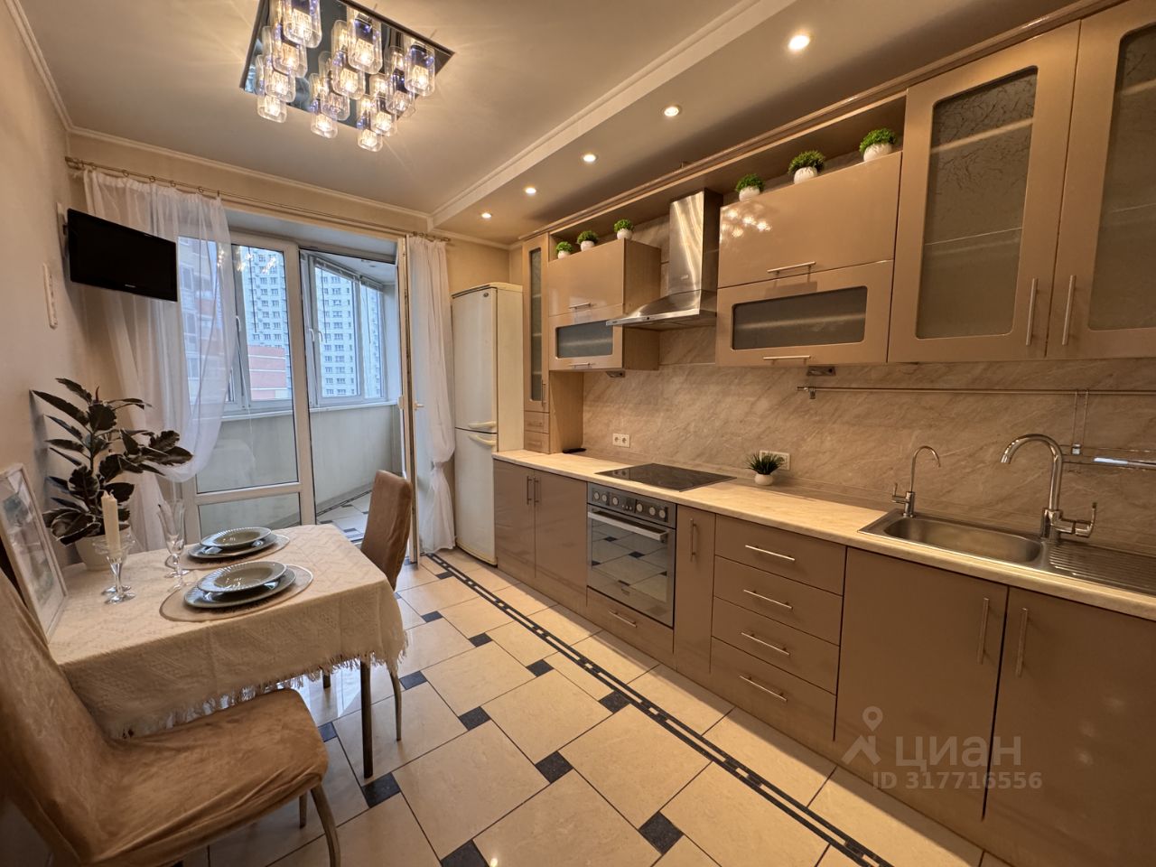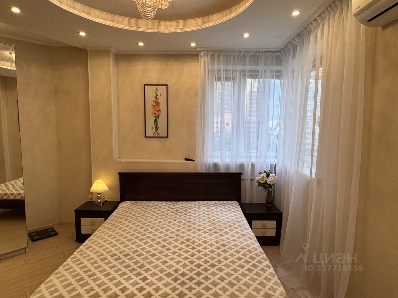 Квартира располагается на 9 этаже 25-этажного монолитно-кирпичного дома. Общая площадь квартиры составляет 42 кв. м, жилая площадь — 20 кв. м, кухня — 10 кв. м. Высота потолков — 2.7 метра, окна выходят в тихий двор.