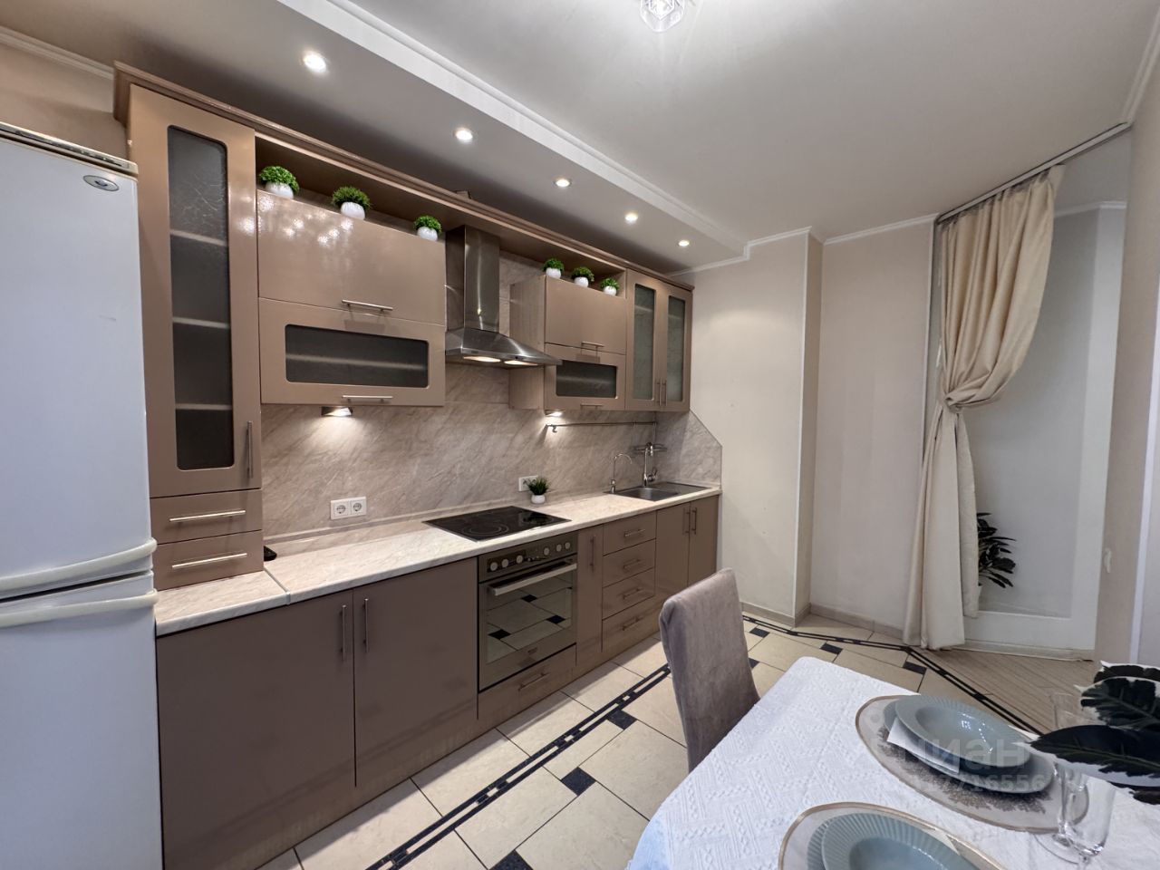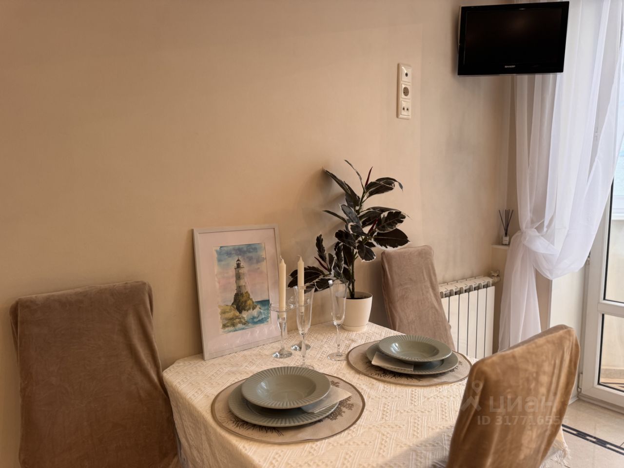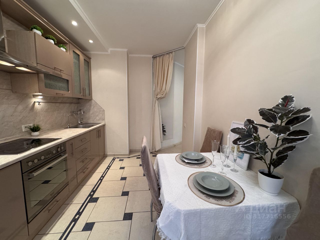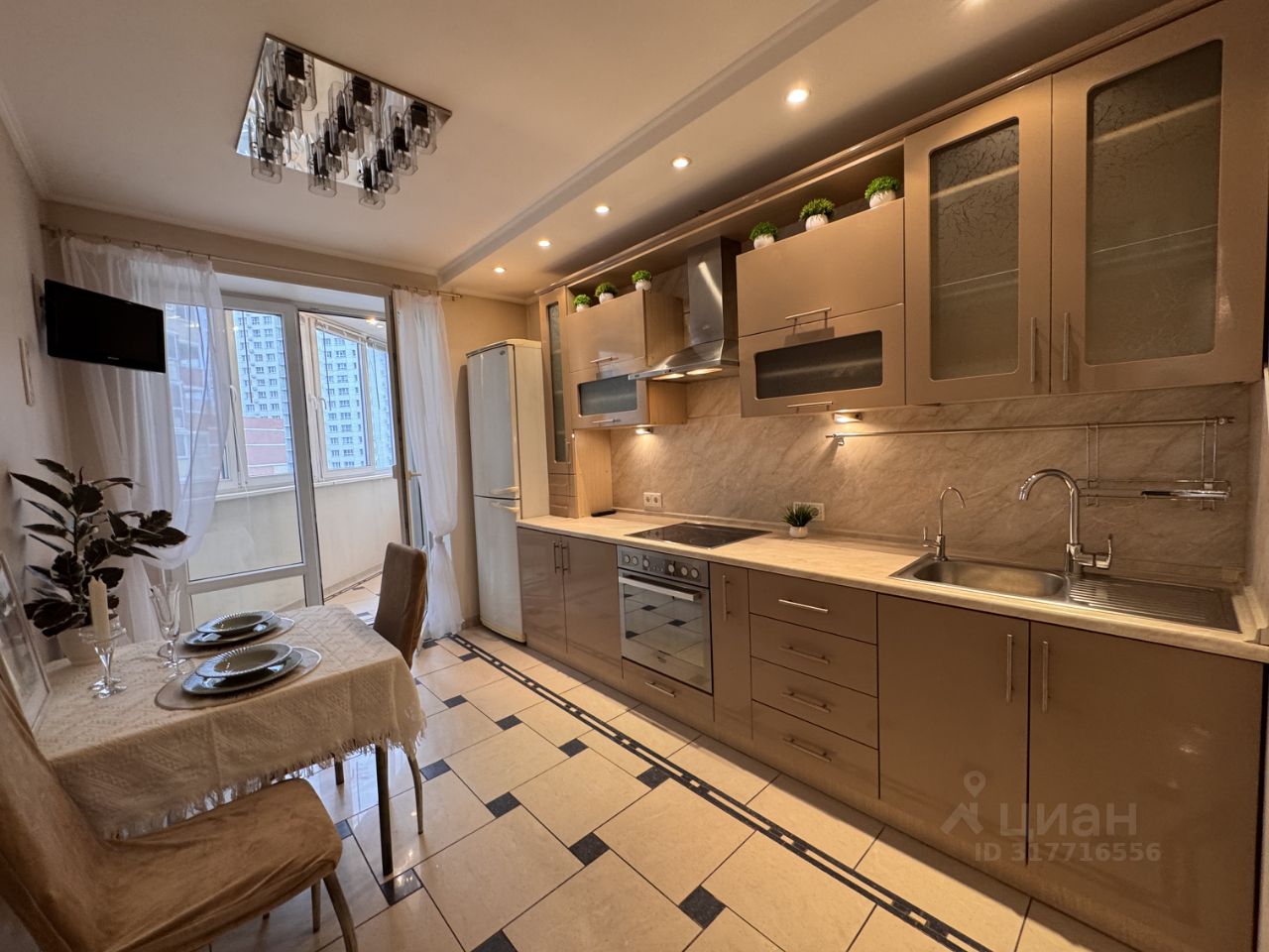 Квартира располагается на 9 этаже 25-этажного монолитно-кирпичного дома. Общая площадь квартиры составляет 42 кв. м, жилая площадь — 20 кв. м, кухня — 10 кв. м. Высота потолков — 2.7 метра, окна выходят в тихий двор.