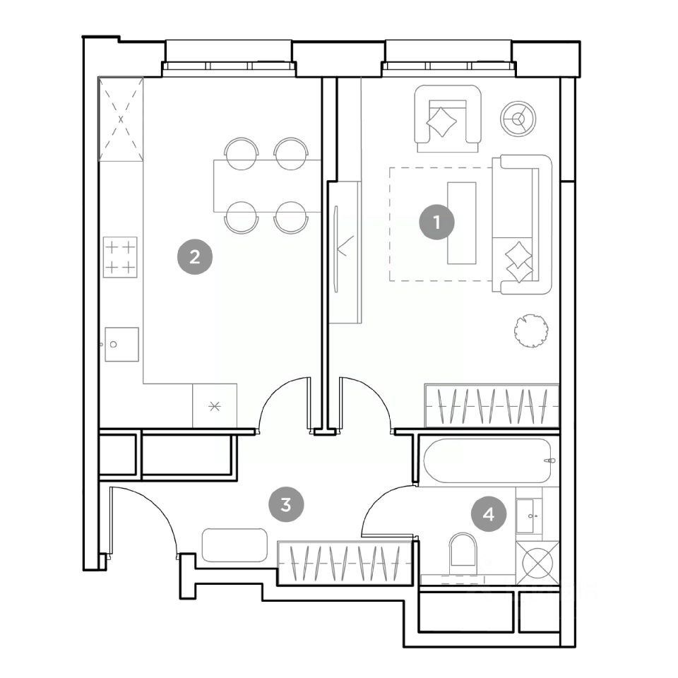 Продается 1-к квартира площадью 39.3 кв.м. на 13-м этаже 25 этажного дома в ЖК ''Гоголь парк'' от ГК ОСНОВА.