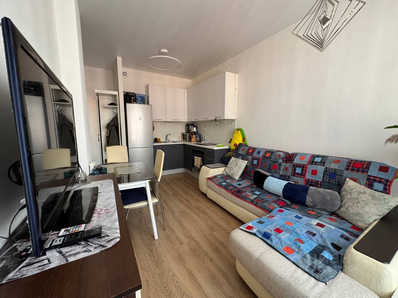Квартира после ремонта (недолго жил арендатор), всё новое: мебель, техника. Приятный вид из окон. Полы — ламинат и плитка. Установлены: кухонный гарнитур, варочная панель, духовой шкаф, холодильник и стиральная машины, кондиционер, телевизор, микроволновка, чайник. Проведён интернет, работает Wi-Fi.