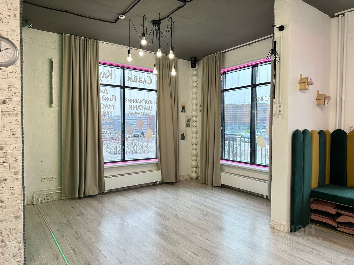 Супер-проходное место!!! Напротив ТЦ Мега, Оби, Ашан и другие. Помещение с ремонтом с высокими потолками 4,5 м и 3 панорамными окнами.Ранее размещался детский центр. Окна выходят на оживленную дорогу, большой автомобильный и пешеходный трафик.