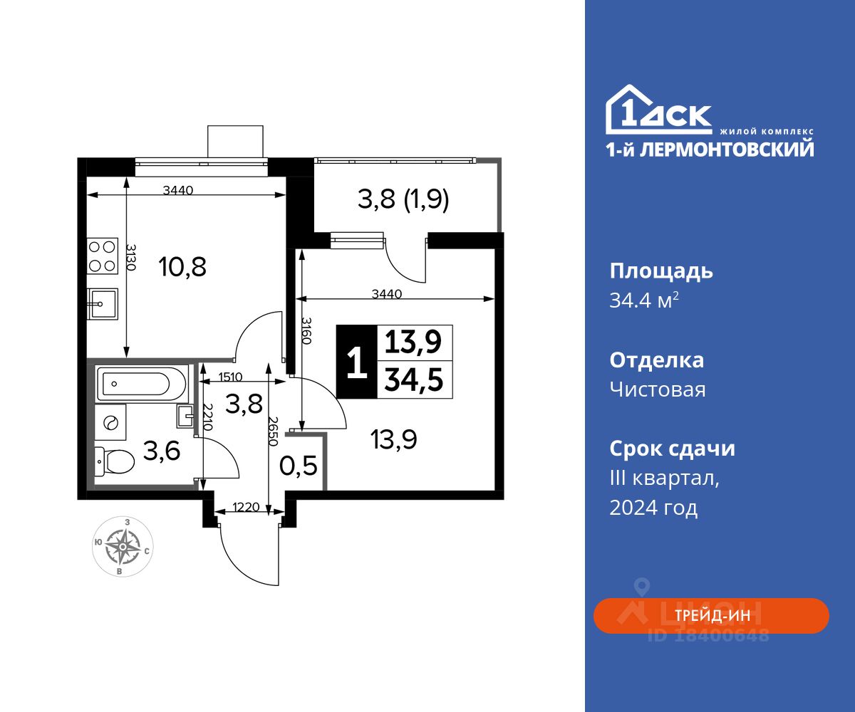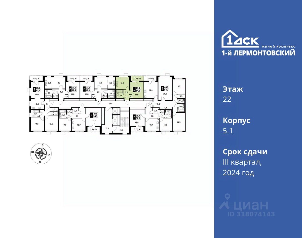 Максимальные скидки при 100% оплате. Корпус сдан! Прямая продажа от застройщика! Жилой Комплекс класса Комфорт плюс. Продаётся 1-к квартира номер 145 в сданном корпусе общей площадью 34.4 кв.м на 22-м этаже 24 этажного дома.