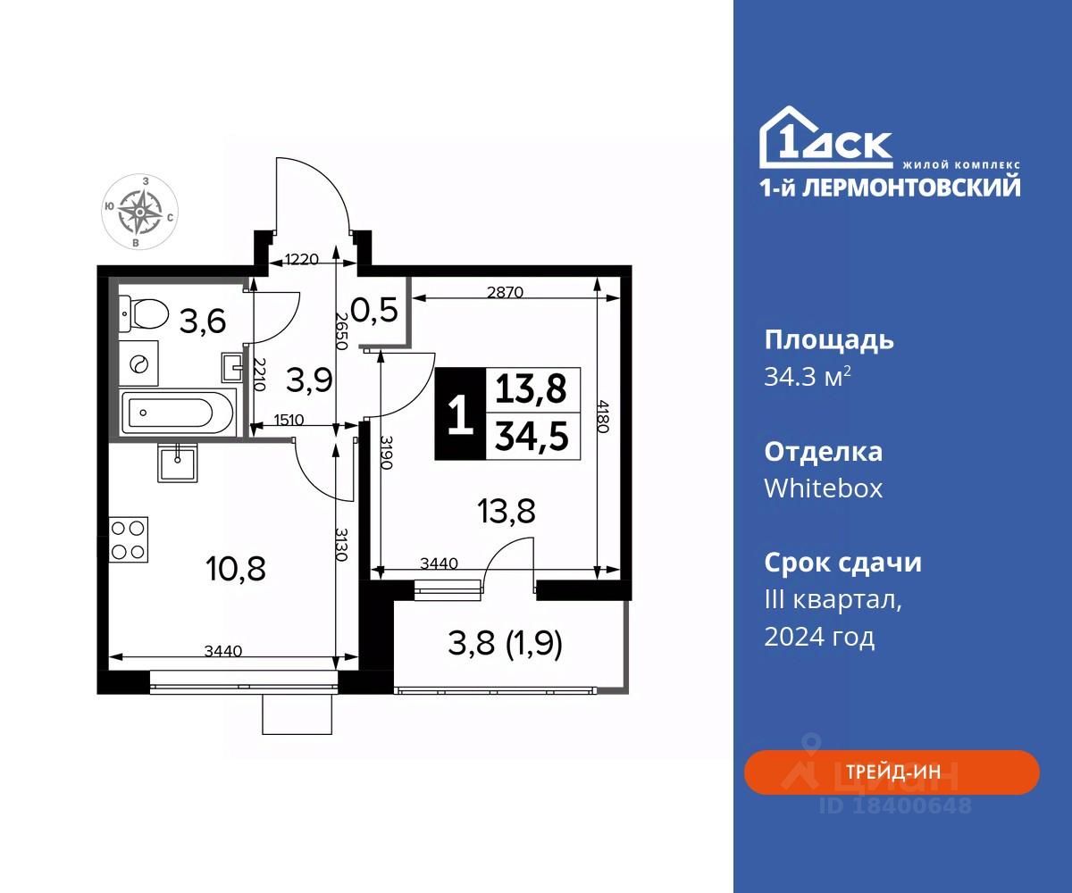 Максимальные скидки при 100% оплате. Корпус сдан! Прямая продажа от застройщика! Жилой Комплекс класса Комфорт плюс. Продаётся 1-к квартира номер 786 в сданном корпусе общей площадью 34.3 кв.м на 22-м этаже 25 этажного дома.