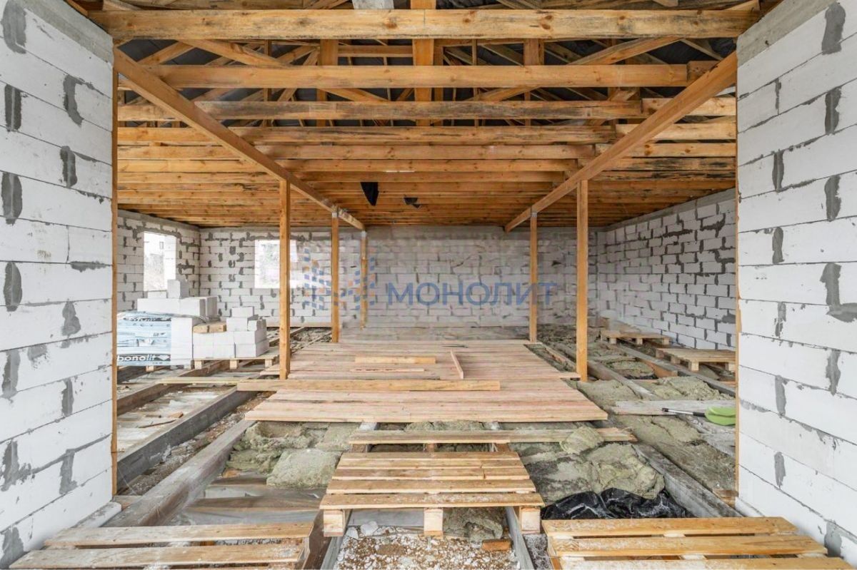 -Свайно-ленточный фундамент глубиной 4.5 метра. -Первый этаж : проектом предусмотрена просторная комната , большая кухня-гостиная , санузел. -Второй этаж : 4 спальных комнаты по проекту , санузел. -Имеется цокольный этаж .