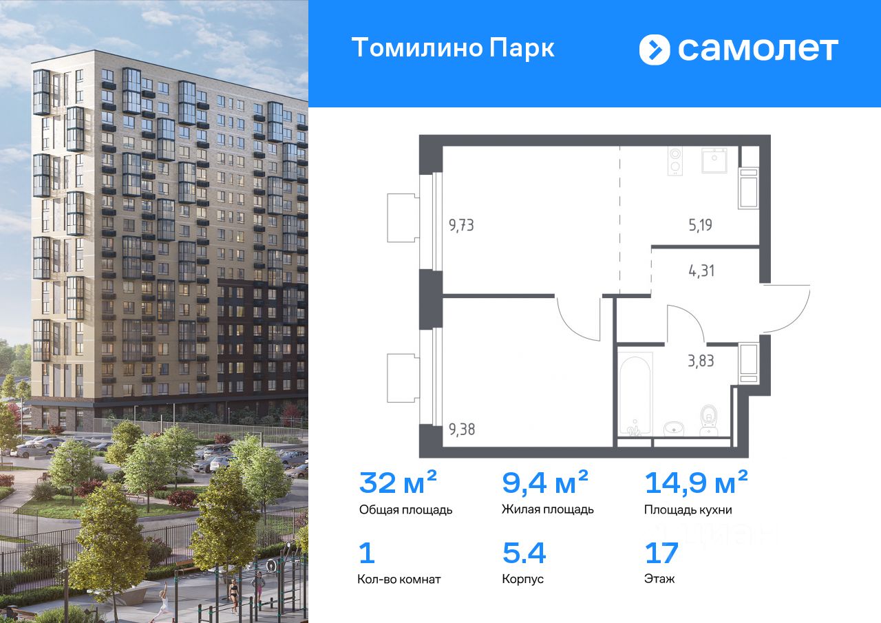 Строим кварталы для жизни с заботой о будущем. Предлагается 1-комнатная квартира комфорт-класса 32 кв.м в корпусе 5.4 на 17 этаже, в ЖК ''Томилино Парк'' Квартира с предчистовой отделкой. Доступность дополнительных опций уточняйте у застройщика.