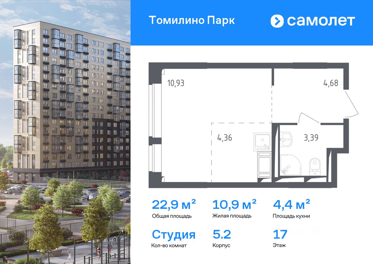 Строим кварталы для жизни с заботой о будущем. Предлагается квартира студия комфорт-класса 22,9 кв.м в корпусе 5.2 на 17 этаже, в ЖК ''Томилино Парк'' Квартира с чистовой отделкой. Доступность дополнительных опций уточняйте у застройщика.