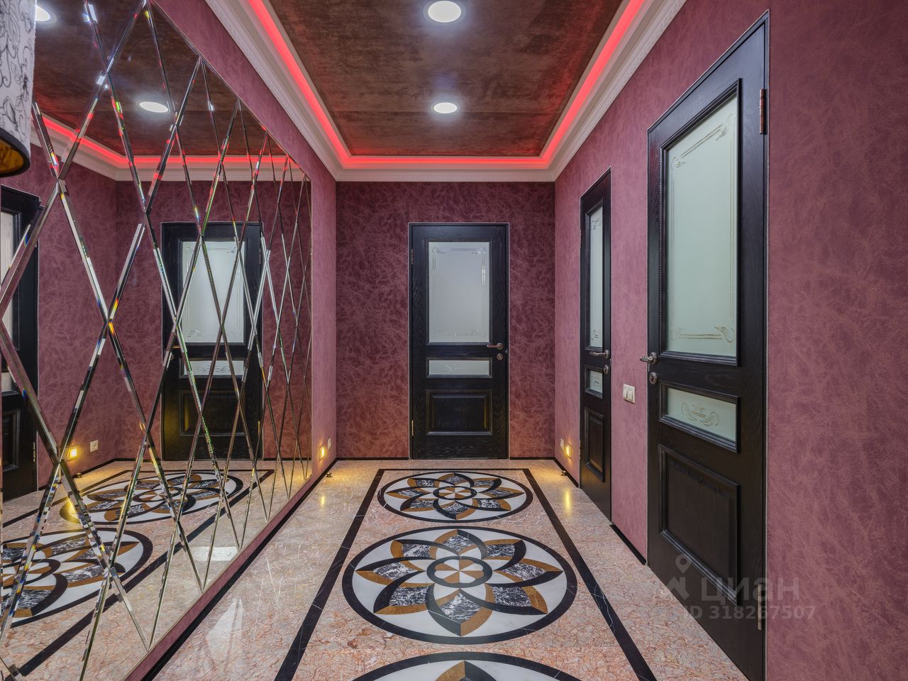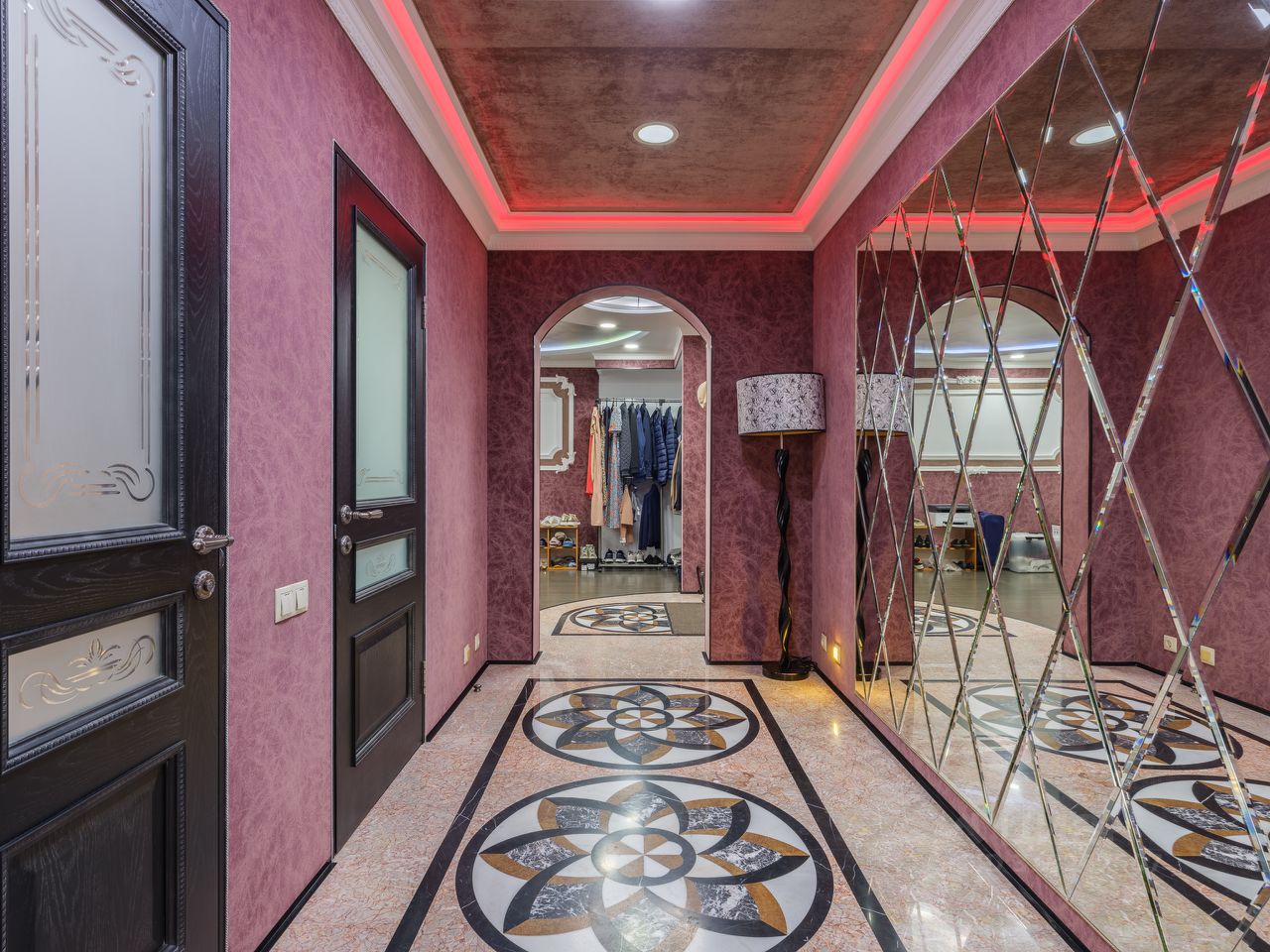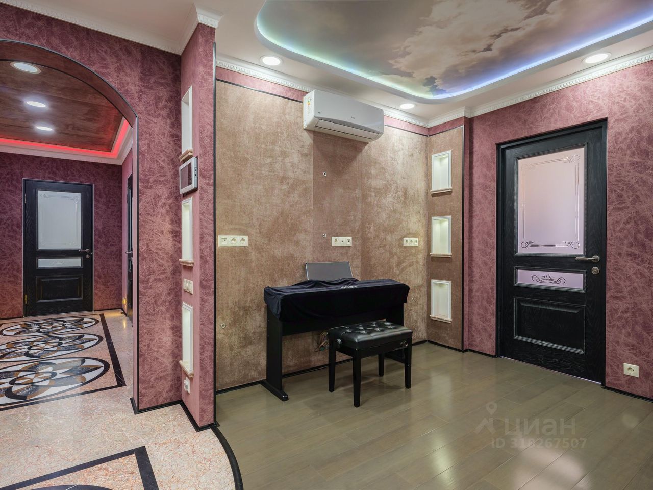 Отделка уровня загородной резиденции: • Стены — обтянуты тканевыми обоями, алькантарой, натуральной кожей и украшены барельефами ручной работы. • Полы — тёплый бамбуковый массив и мраморная мозаика с подогревом. • Потолки — многоуровневые, с декоративной подсветкой и авторским оформлением. • Полная шумоизоляция — в квартире по-настоящему тихо. Мебель и техника: • Вся мебель выполнена на заказ ведущими европейскими производителями. • Техника — современные модели Electrolux, качественная, надёжная и красивая. • Кондиционеры в каждой комнате, межкомнатные двери из ценных пород древесины, надёжная входная дверь с усиленной изоляцией.