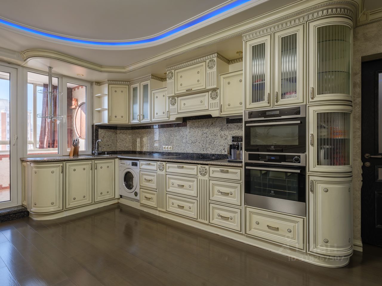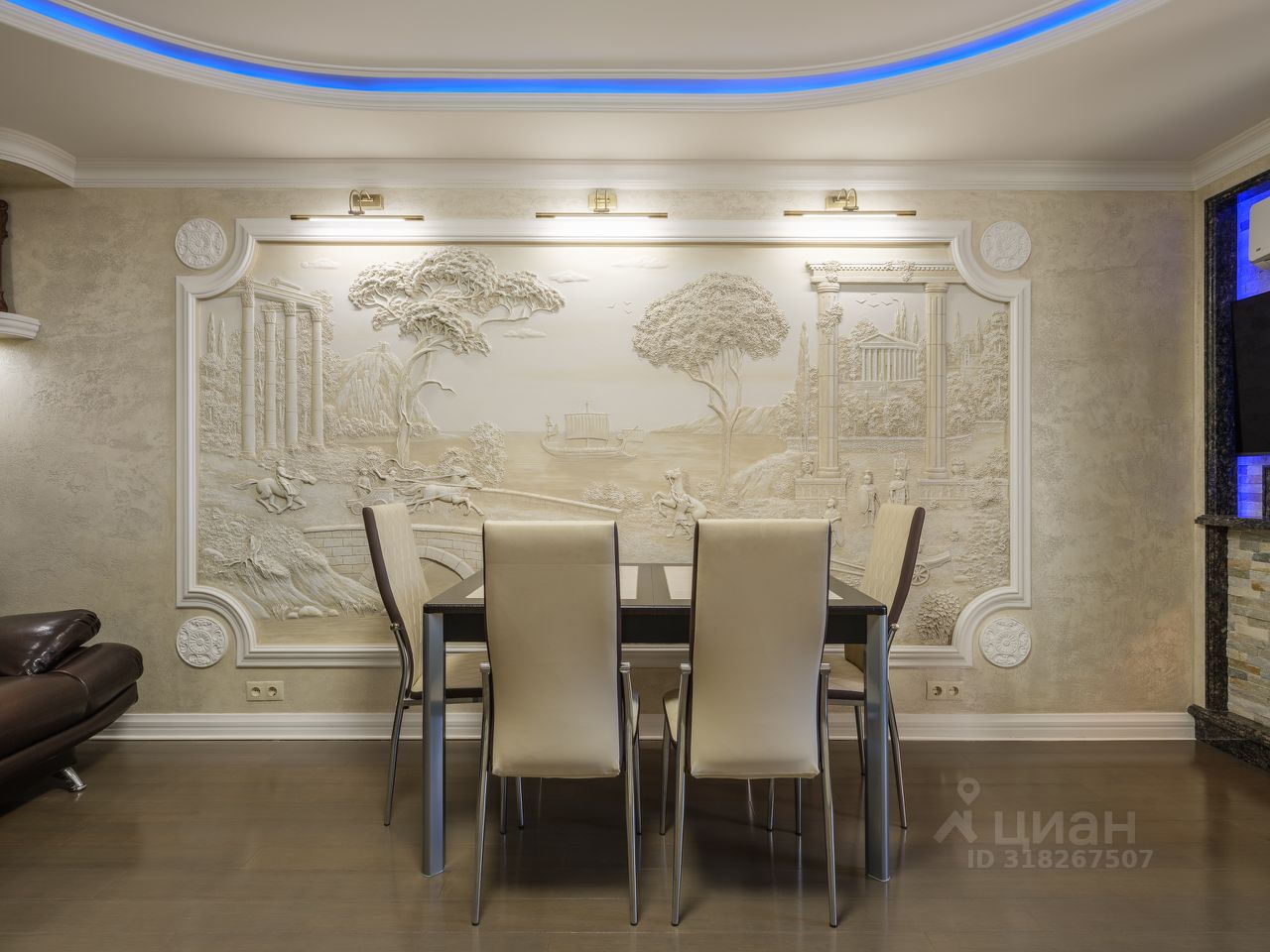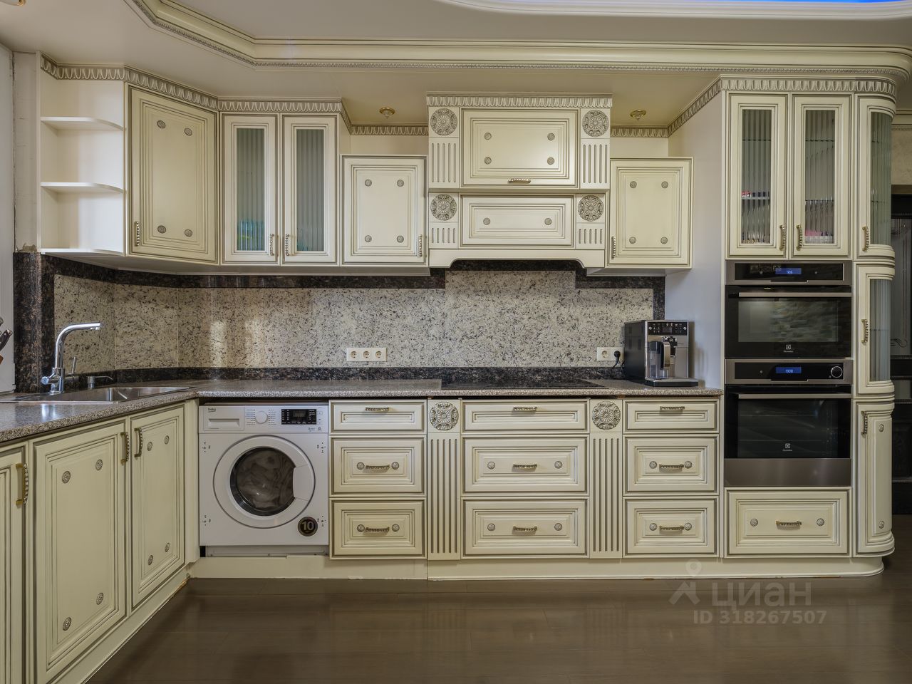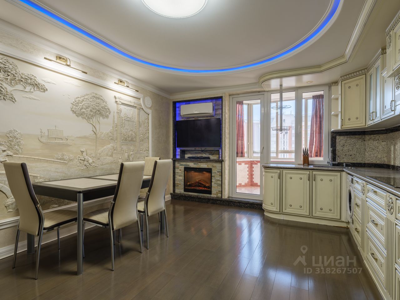 Отделка уровня загородной резиденции: • Стены — обтянуты тканевыми обоями, алькантарой, натуральной кожей и украшены барельефами ручной работы. • Полы — тёплый бамбуковый массив и мраморная мозаика с подогревом. • Потолки — многоуровневые, с декоративной подсветкой и авторским оформлением. • Полная шумоизоляция — в квартире по-настоящему тихо. Мебель и техника: • Вся мебель выполнена на заказ ведущими европейскими производителями. • Техника — современные модели Electrolux, качественная, надёжная и красивая. • Кондиционеры в каждой комнате, межкомнатные двери из ценных пород древесины, надёжная входная дверь с усиленной изоляцией.