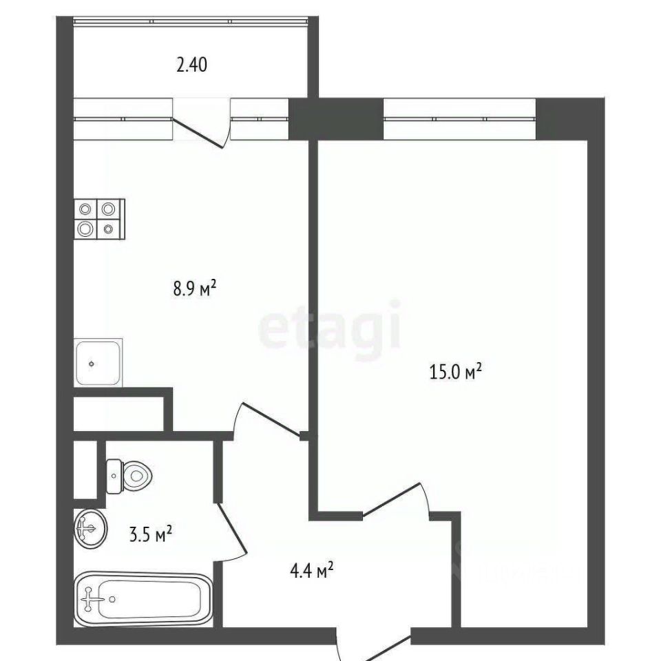 Основные характеристики: - Расположена на 4 этаже современного монолитно-кирпичного дома, построенного в 2013 году. - Великолепная планировка: просторная кухня и широкая комната для комфортного отдыха.