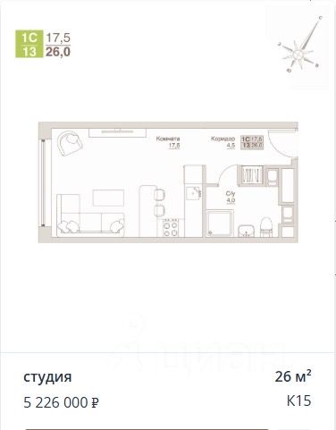 Общая площадь26 м2