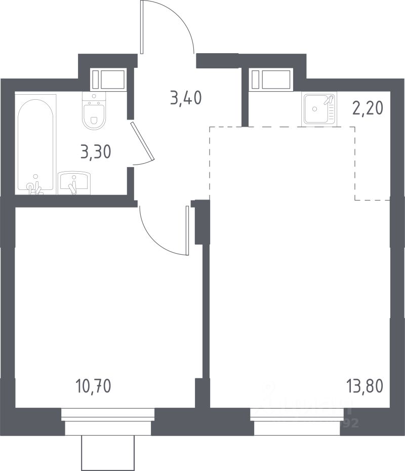 Общая площадь33,7 м2
