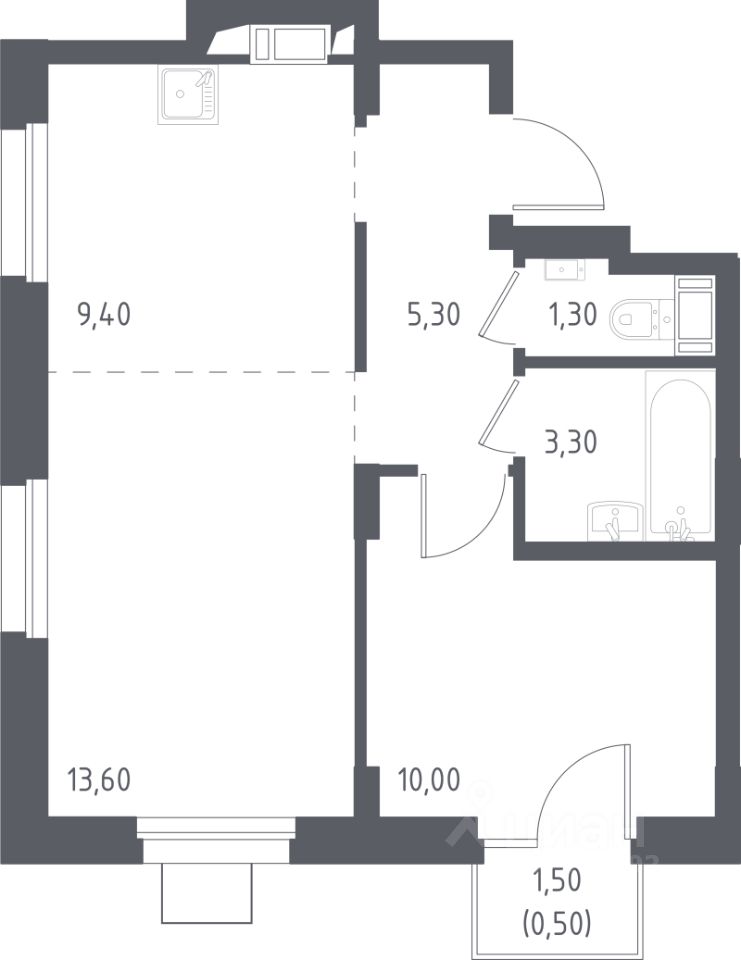 Общая площадь44,8 м2