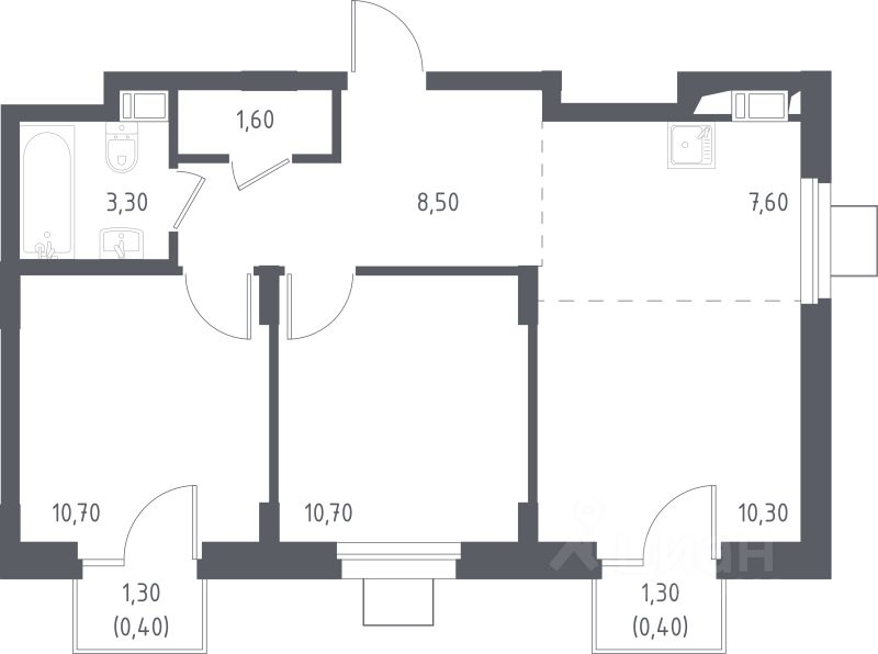 Общая площадь56,1 м2