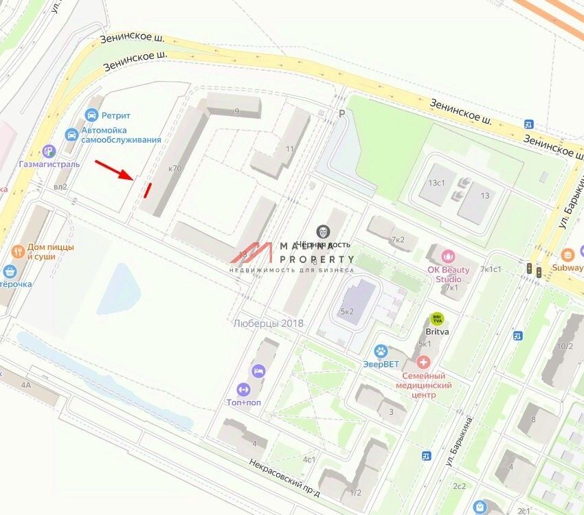 Аренда торгового помещения 117 м2по адресу г. Люберцы, мкр. Зенино, Некрасовский проезд, д.7 (6 минут транспортом от метро Некрасовка). 1 линия домов, рядом с входом в супермаркет Пятерочка.