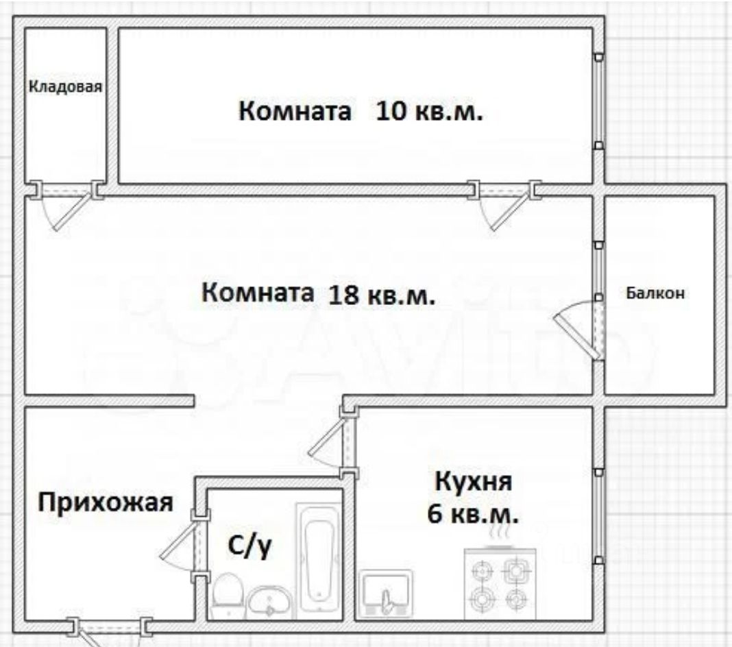 Двухкомнатная квартира со смешными комнатами ( 18 кв. м и 10 кв. м) и гардеробной комнатой.