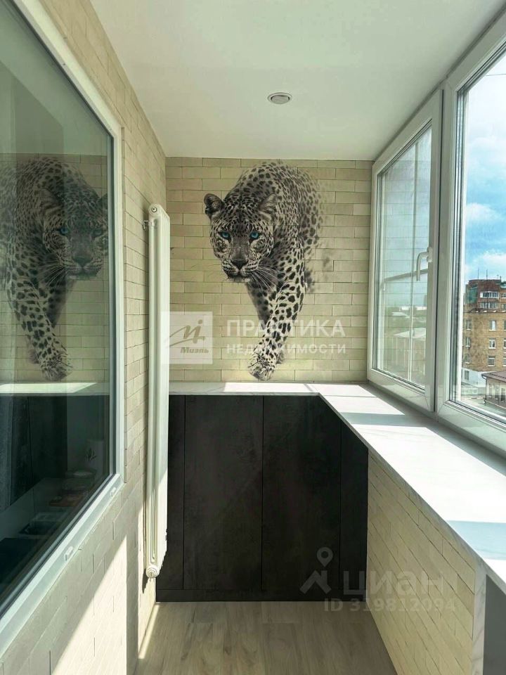 Окна выходят на улицу, на лоджии оборудовано рабочее место.