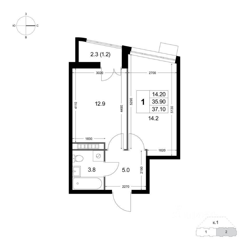 Продаётся 1-комнатная квартира в строящемся доме (Корпус 1), срок сдачи: IV-кв. 2026, общей площадью 37.1 кв.м., на 7 этаже. Новый жилой комплекс ''Легенда Коренёво'' от застройщика ''ГК Некрасовка Девелопмент'' расположен по адресу: Россия, Московская область, городской округ Люберцы, дачный посёлок Красково, улица Лорха