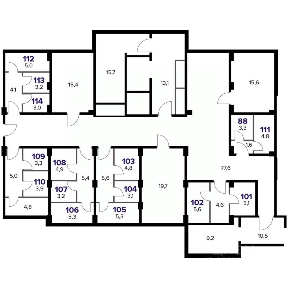 Прямая продажа от застройщика! Кладовая номер 105К общей площадью 5.3 кв. м на -1-м этаже в ЖК ''1-й Лермонтовский''.
