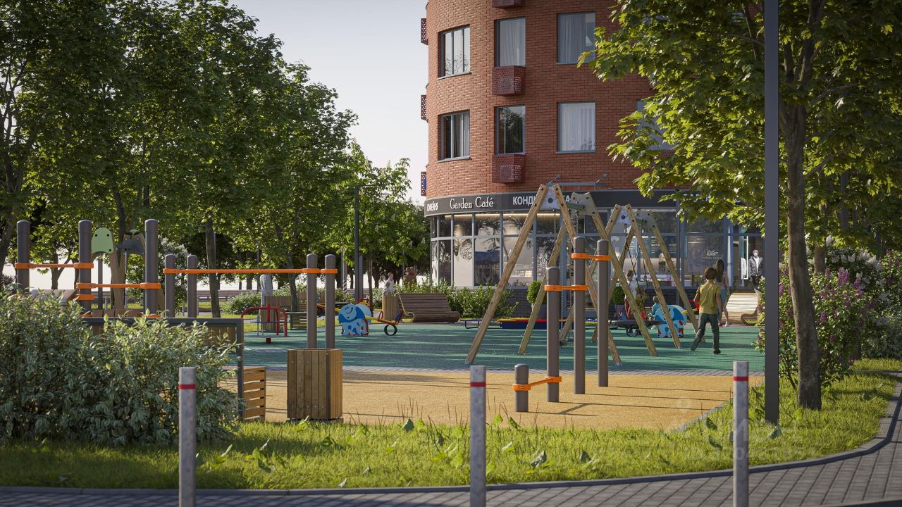 На территории комплекса вас ждут: зеленый двор, зоны отдыха, детские площадки и полностью пешеходная среда. На первых этажах домов предусмотрены магазины, кафе и предприятия бытового сервиса.
