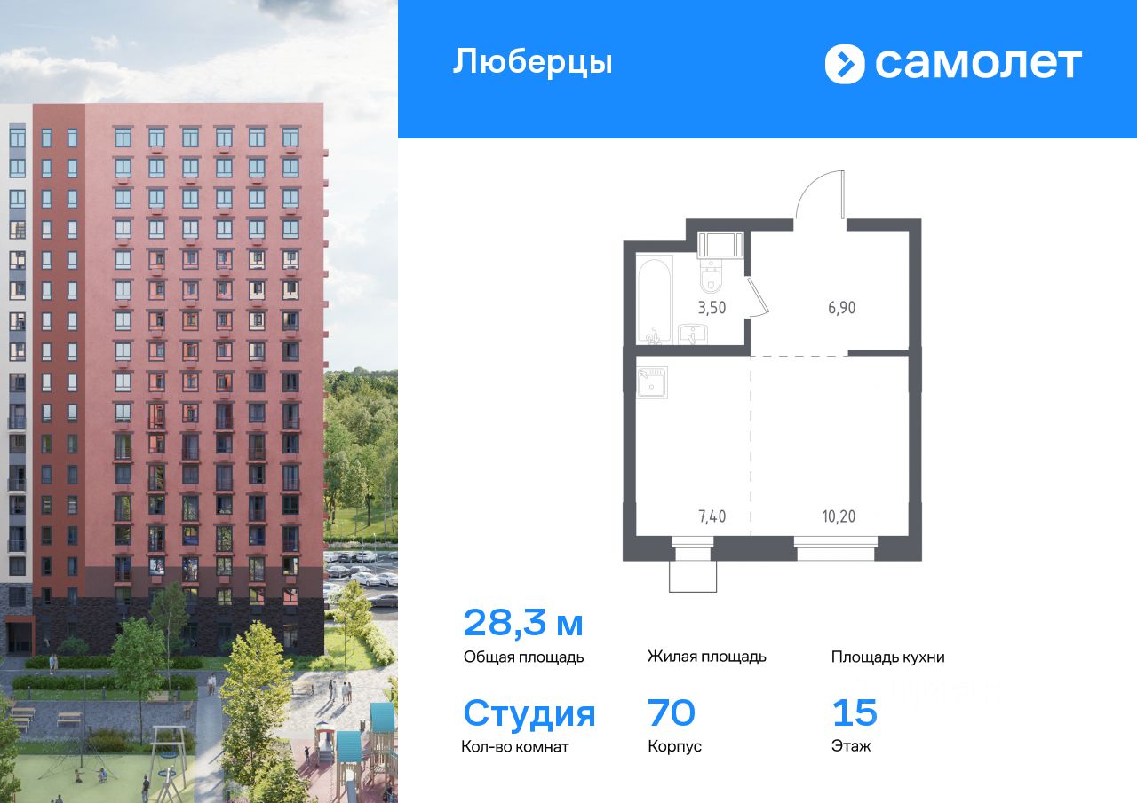 Предлагаются апартаменты студия комфорт-класса 28,3 кв.м в корпусе 70 на 15 этаже, в ''Люберцы''