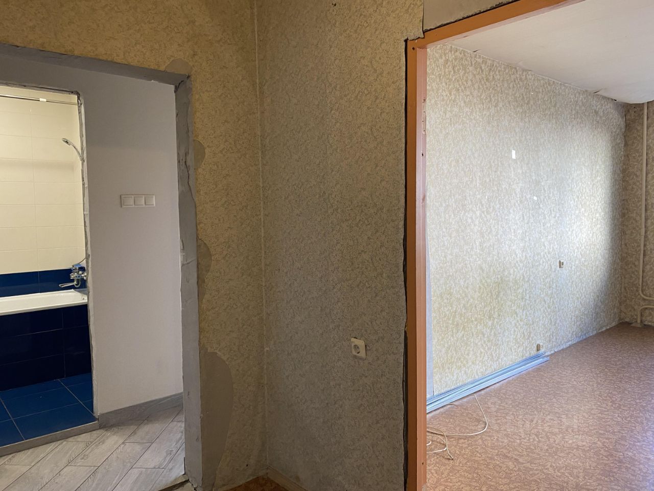 в гардеробной и коридоре - частично отделаны стены, на полу частично в коридоре плитка.