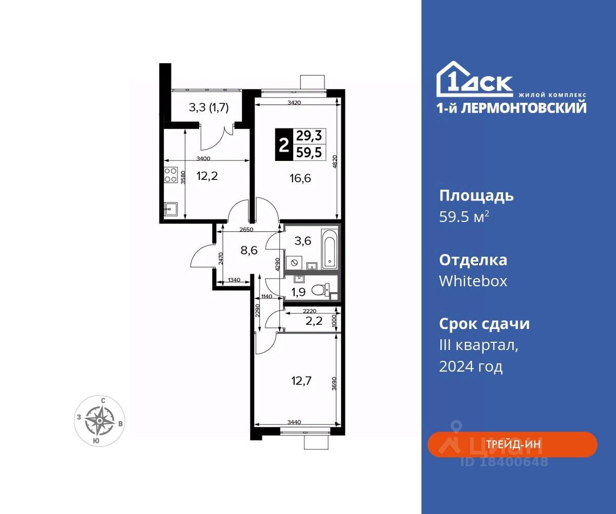 Максимальные скидки при 100% оплате. Корпус сдан! Прямая продажа от застройщика! Жилой Комплекс класса Комфорт плюс. Продаётся 2-к квартира номер 522 в сданном корпусе общей площадью 59.5 кв.м на 23-м этаже 24 этажного дома.