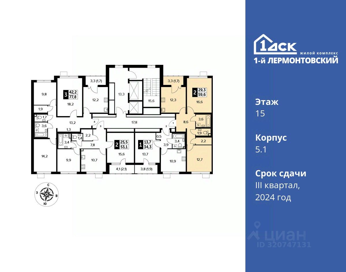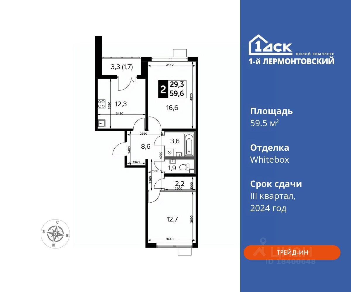 Максимальные скидки при 100% оплате. Корпус сдан! Прямая продажа от застройщика! Жилой Комплекс класса Комфорт плюс. Продаётся 2-к квартира номер 398 в сданном корпусе общей площадью 59.5 кв.м на 15-м этаже 24 этажного дома.