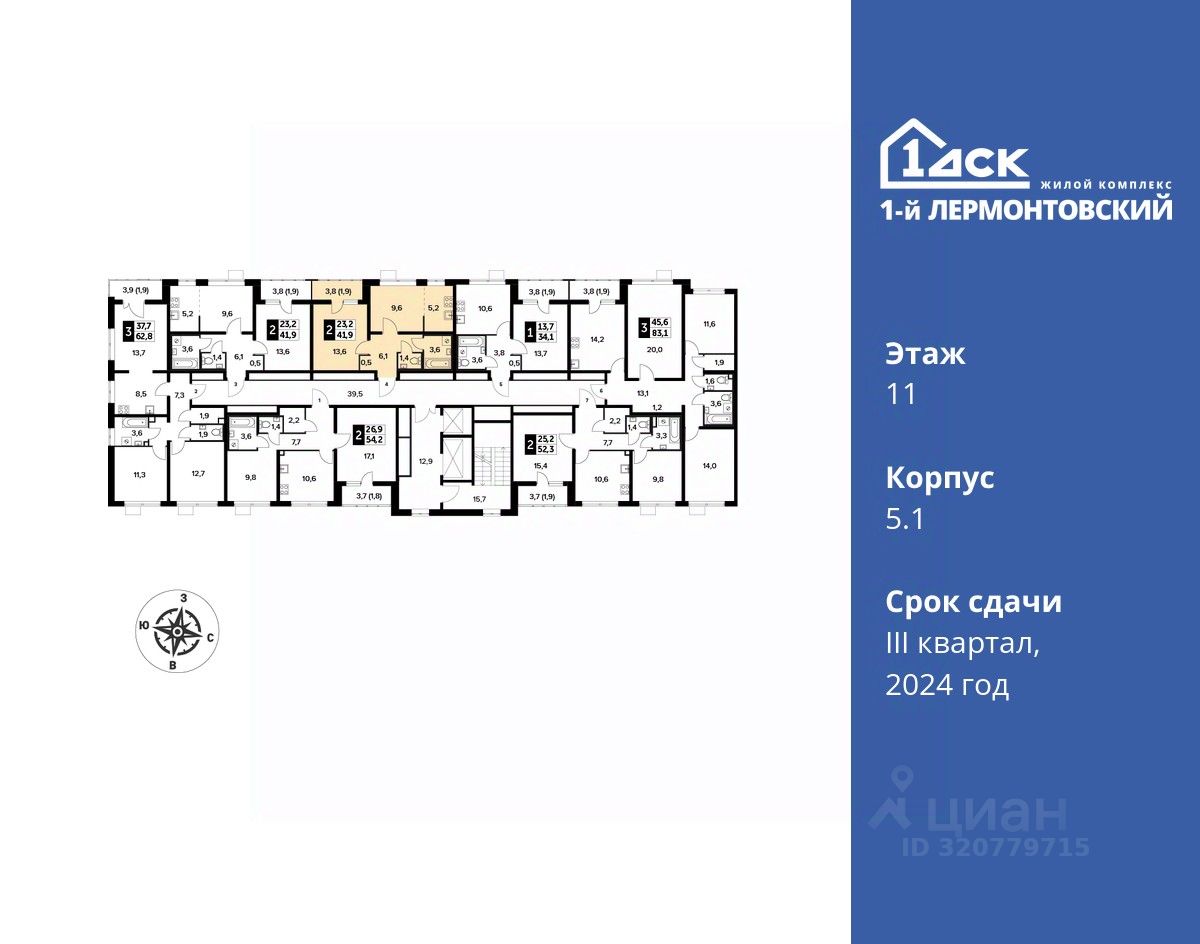 Максимальные скидки при 100% оплате. Корпус сдан! Прямая продажа от застройщика! Жилой Комплекс класса Комфорт плюс. Продаётся 2-к квартира номер 67 в сданном корпусе общей площадью 41.9 кв.м на 11-м этаже 24 этажного дома.