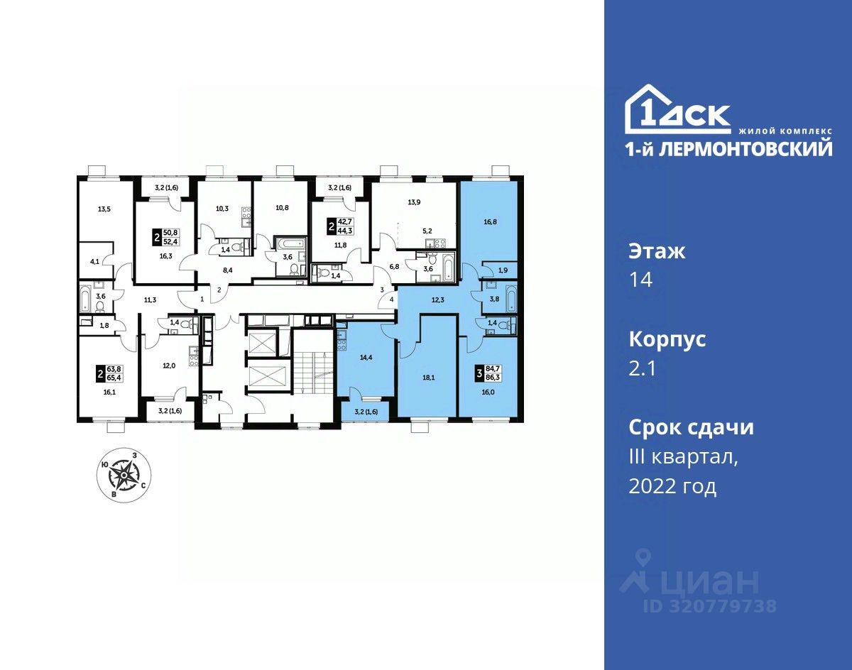 Максимальные скидки при 100% оплате. Корпус сдан! Прямая продажа от застройщика! Жилой Комплекс класса Комфорт плюс. Продаётся 3-к квартира номер 820 в сданном корпусе общей площадью 86.5 кв.м на 14-м этаже 25 этажного дома.